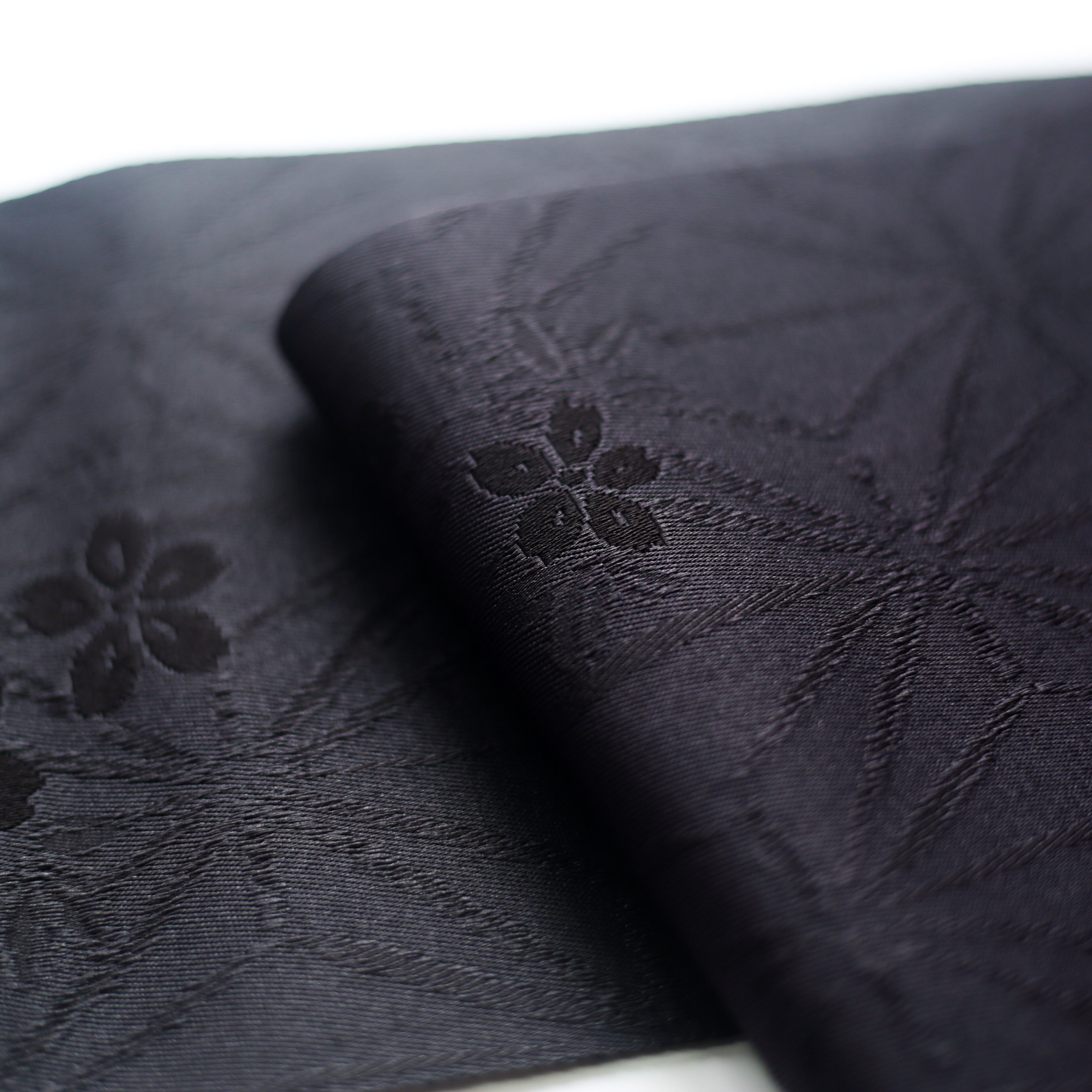 さりげない桜柄・麻の葉柄が上品な、薄手で締めやすい半幅帯です。