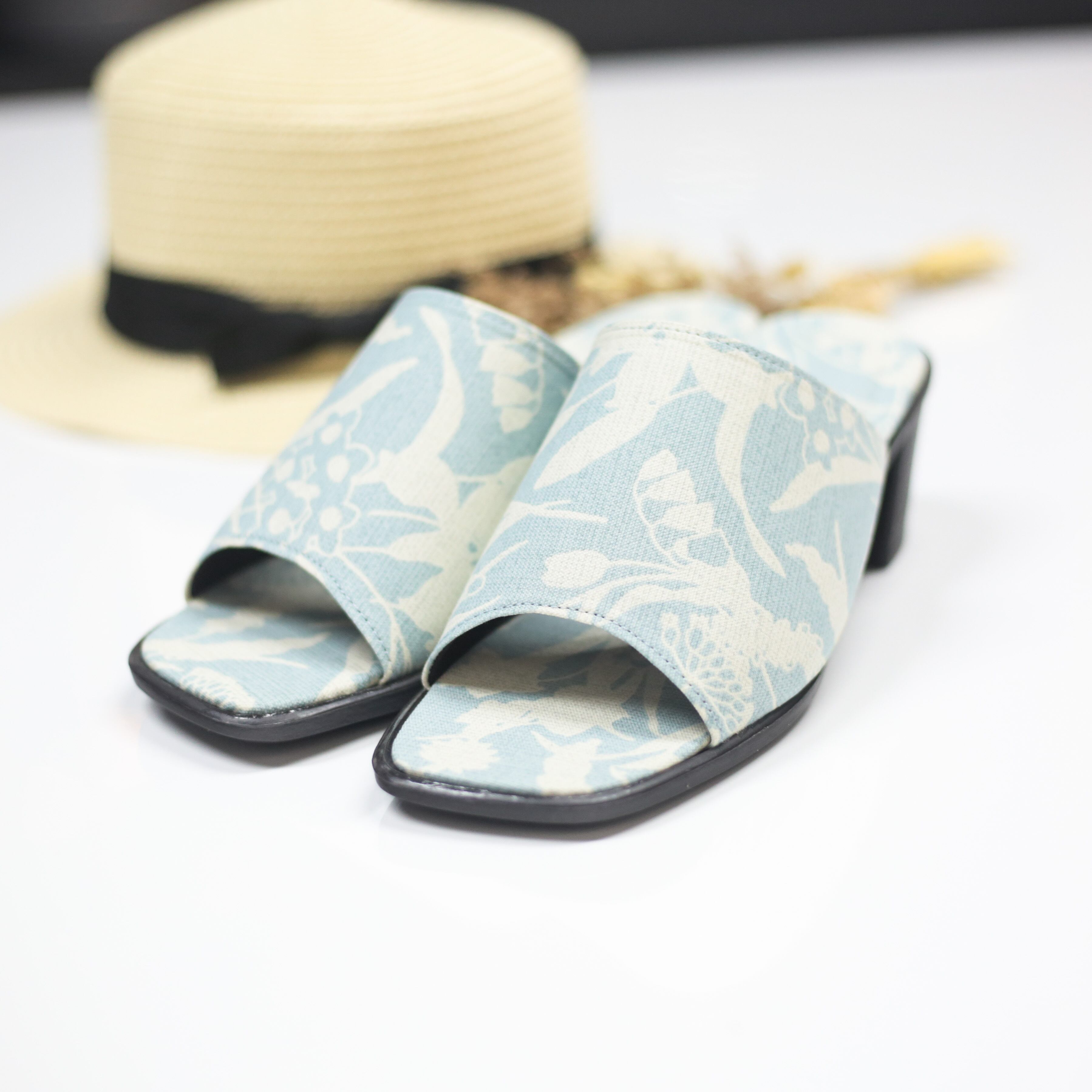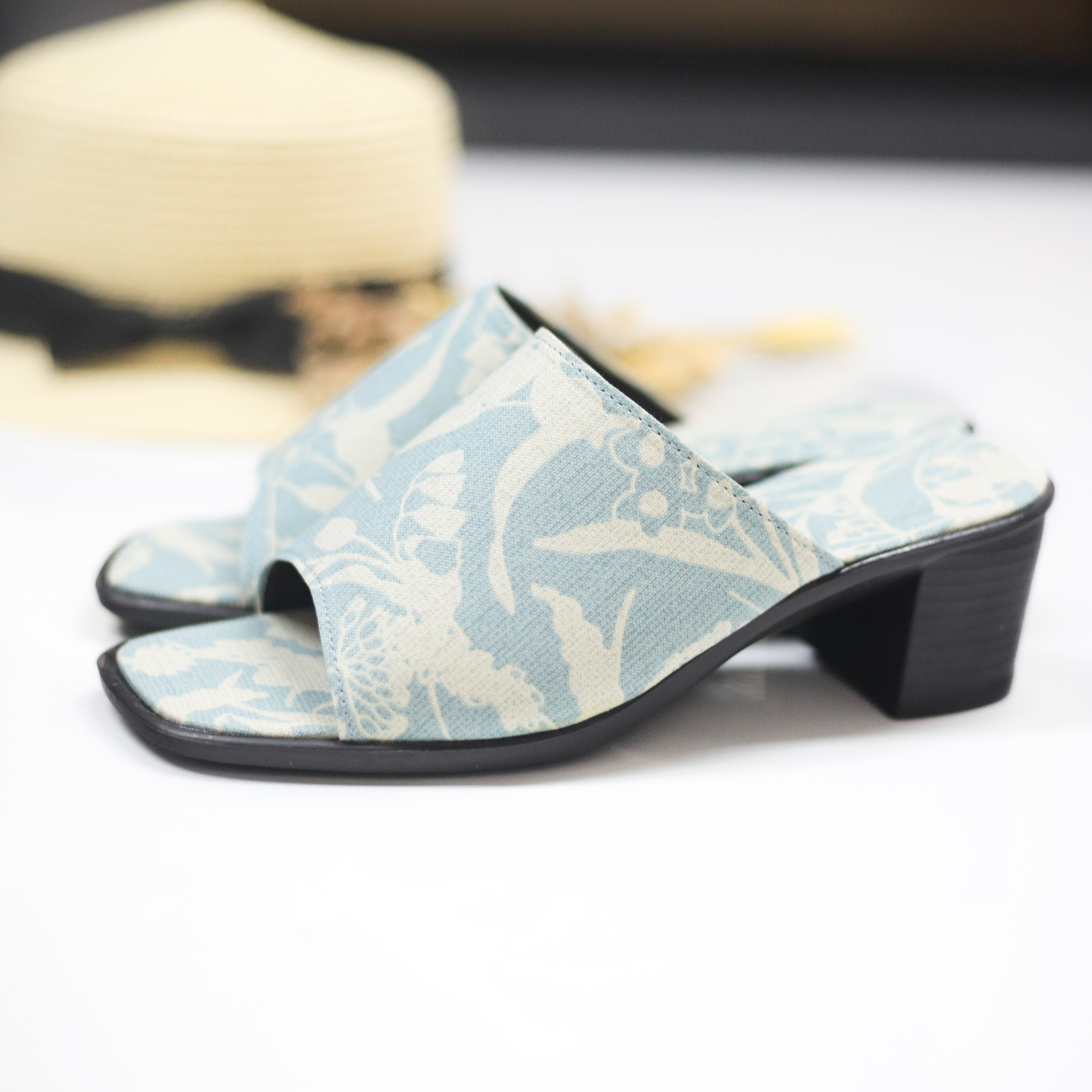 水色に花柄が爽やかなミュールタイプの和風サンダルです。