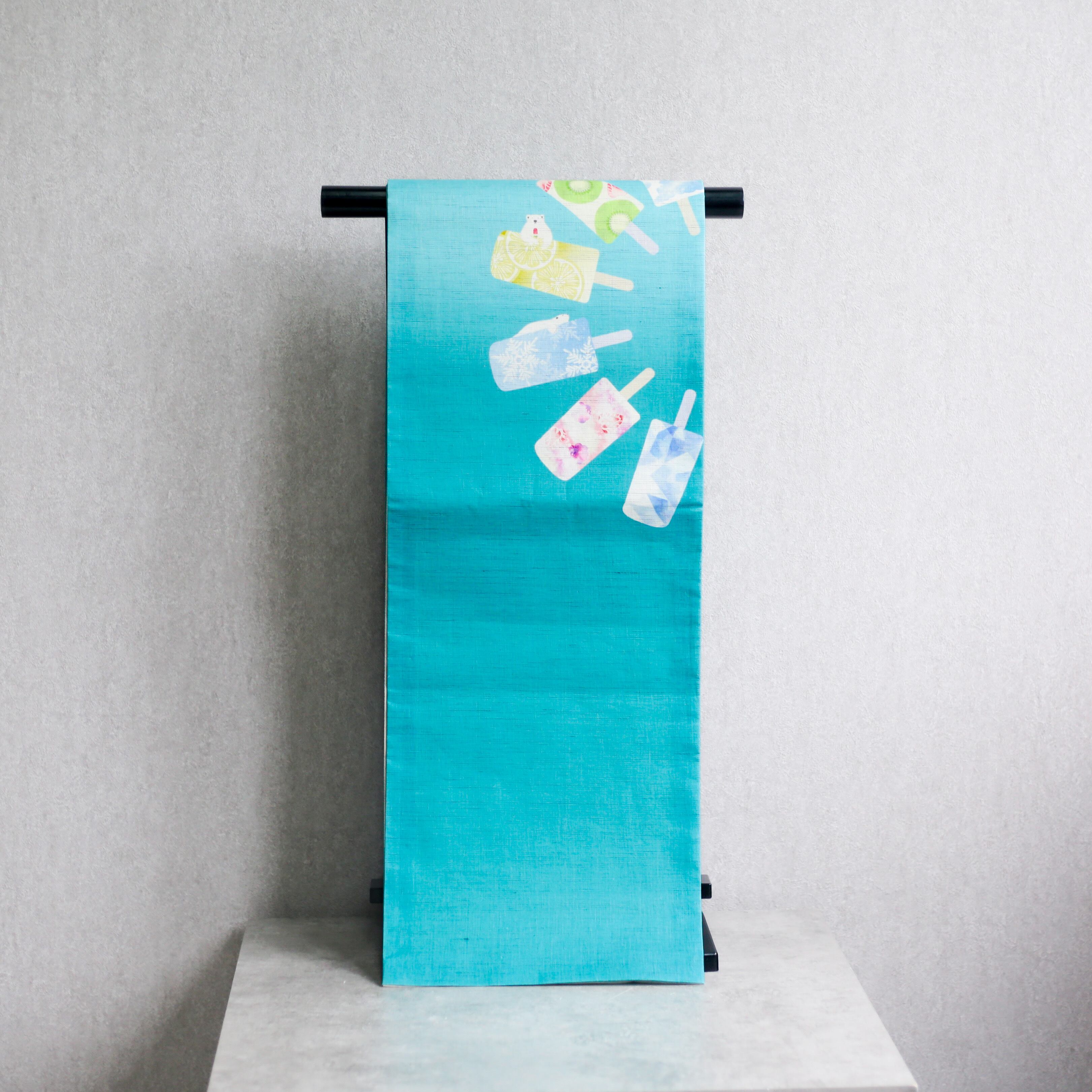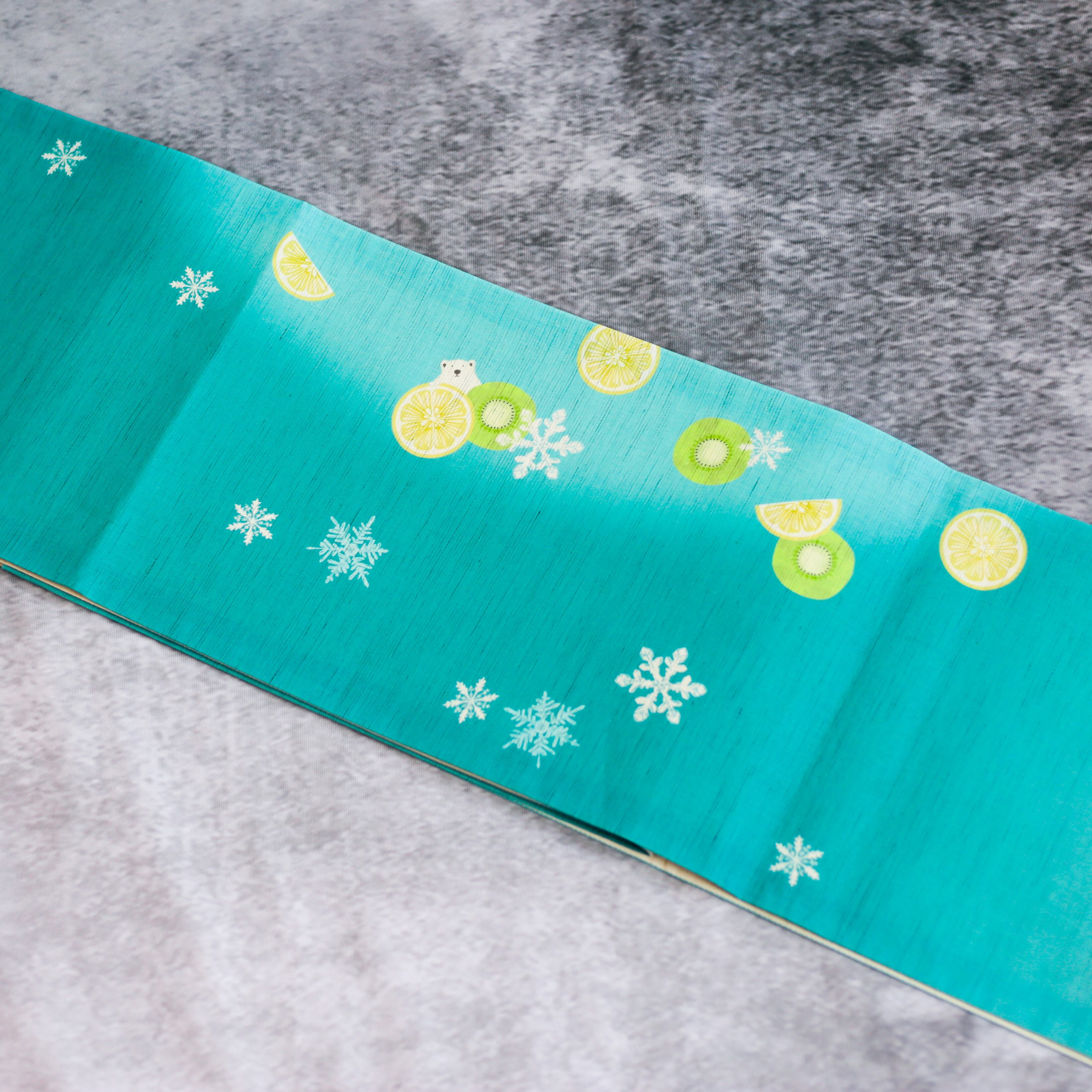 WA by Petal Prier セレクト 麻 京袋帯【白くまキャンディ/ターコイズ】
