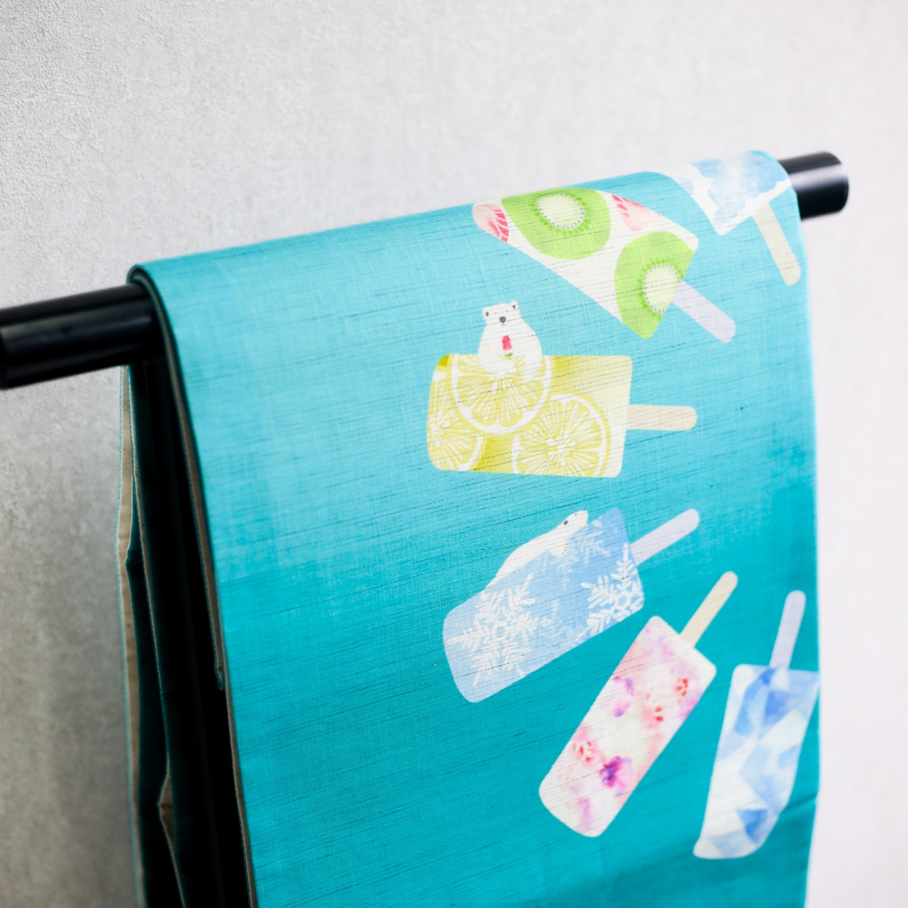 カラフルなフルーツキャンディと涼し気なデザインで暑い日も癒されます。