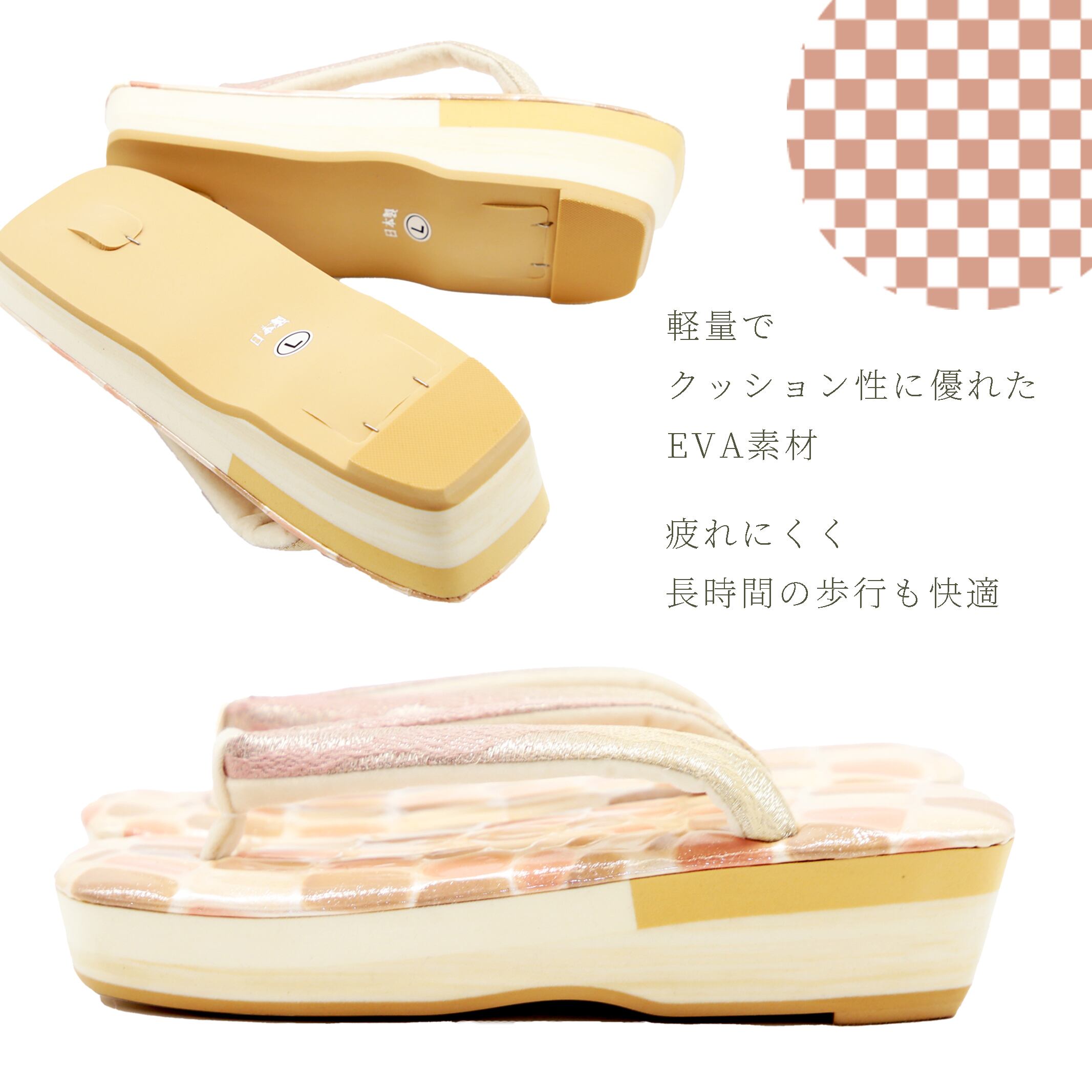 草履はバッグとお揃いの牛革で、EVA台は軽量でクッション性に優れ、滑りにくい仕様です。