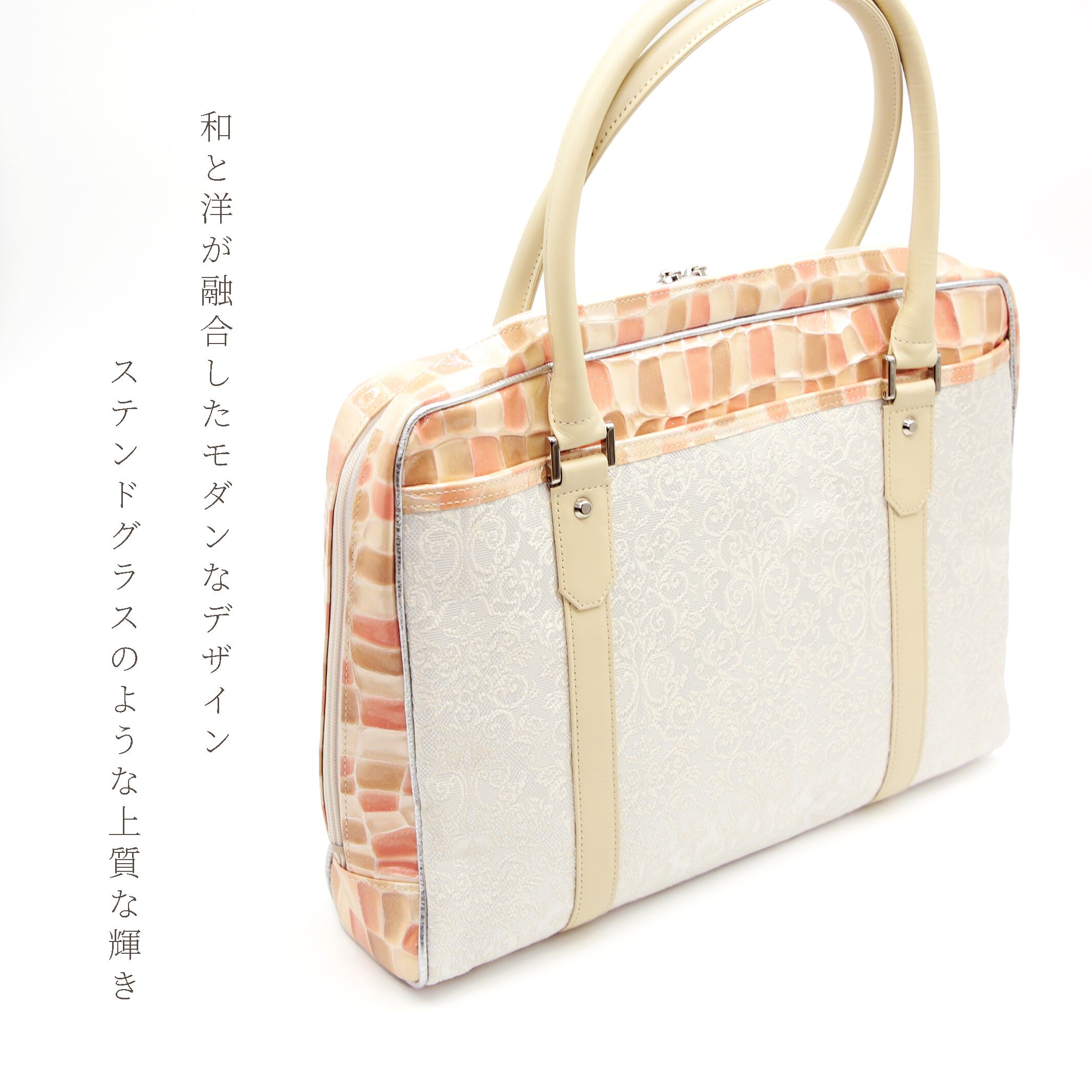 ステンドグラスのような牛革と正絹帯地使用の高級バッグ。