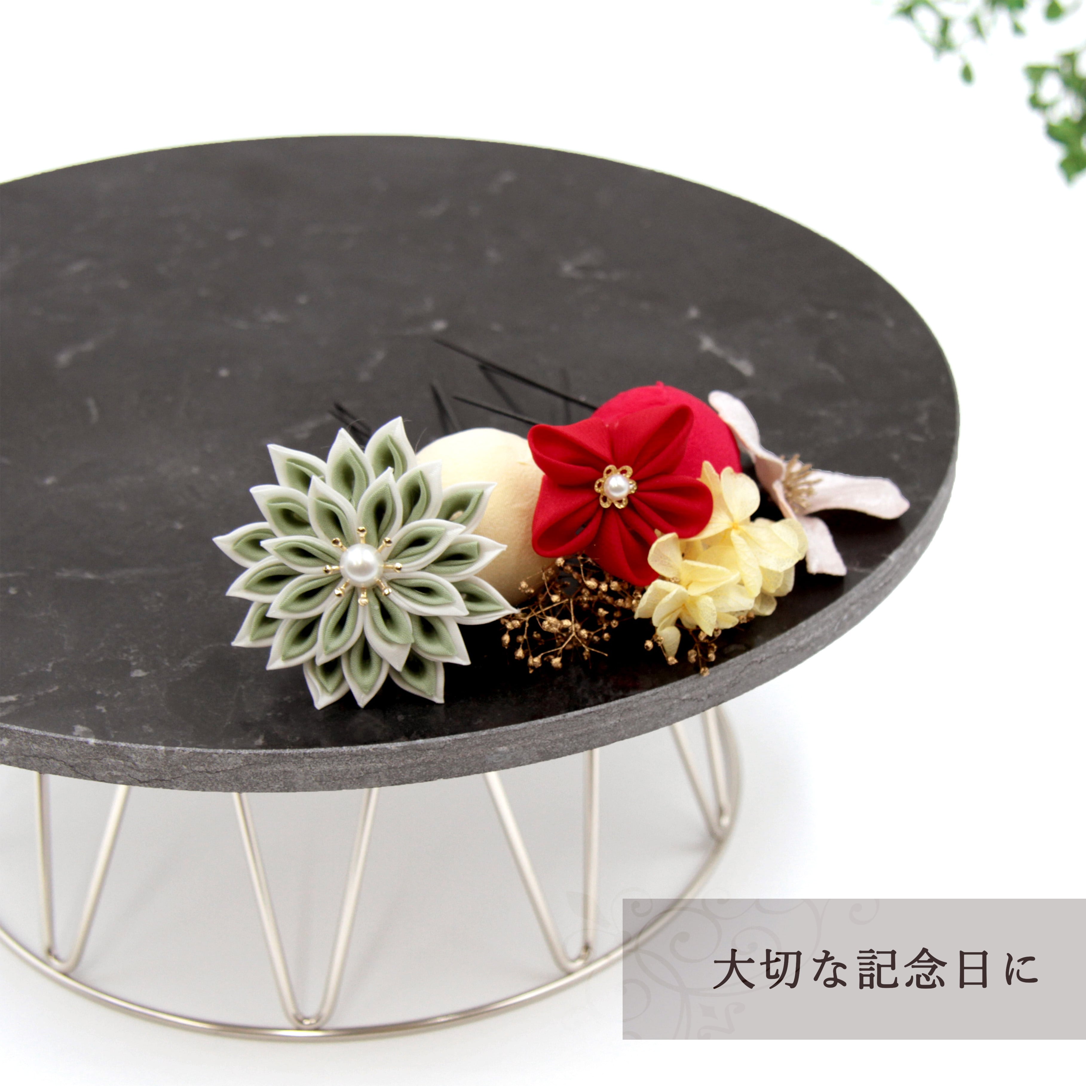 ※ドライフラワー・つまみ細工は非常に繊細です。丁寧にお包みして発送することを心がけておりますが、配送過程でお花によっては花落ちなどがある事がございます。ご了承ください。