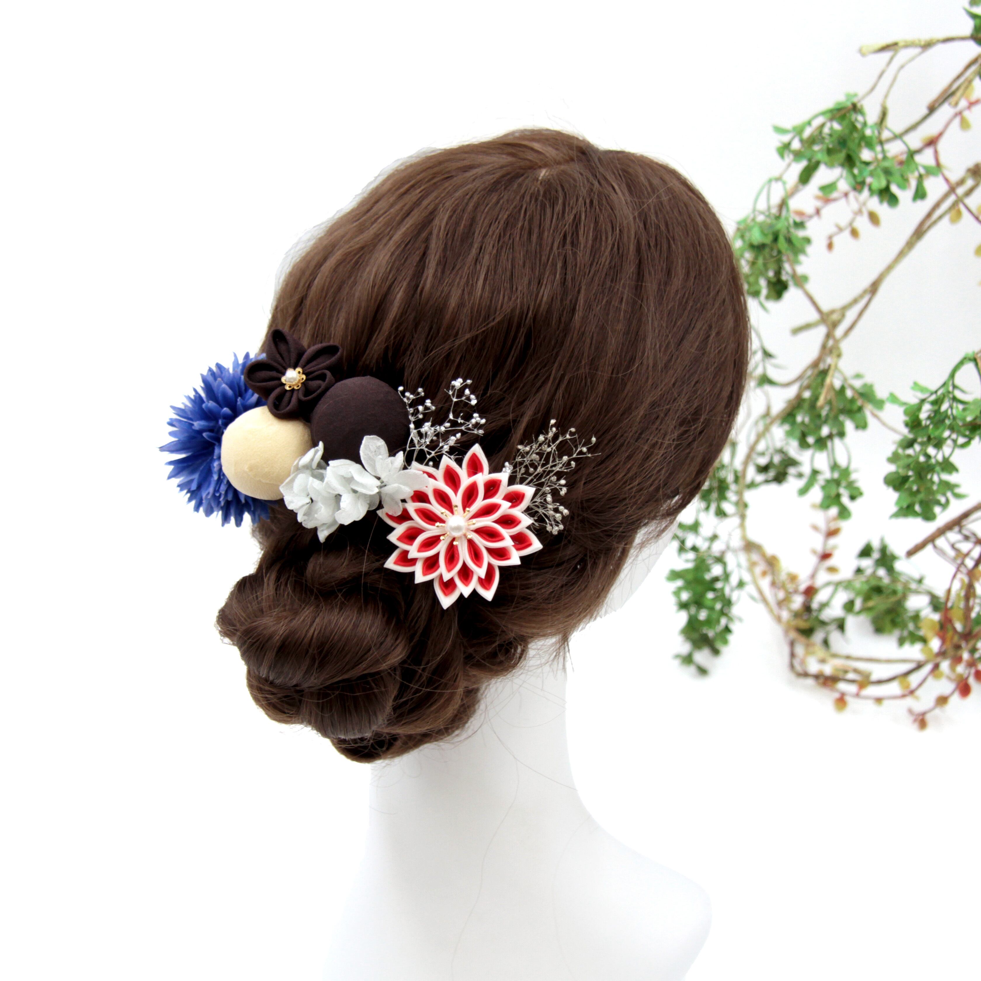 ハンドメイドの剣つまみやつまみ細工を使用した、オリジナル髪飾りです。