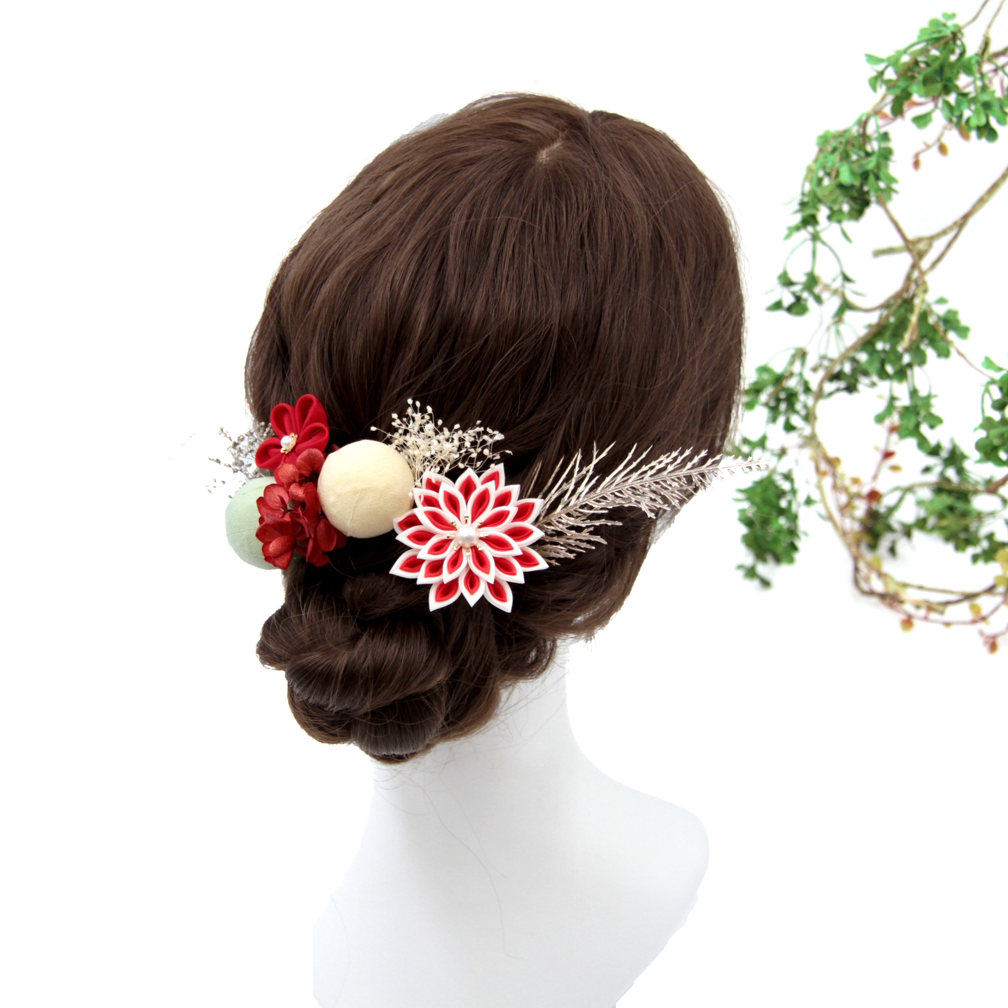 髪飾り 髪飾りセット 剣つまみ つまみ細工 ドライフラワー 赤 白 緑 成人式 振袖 卒業式 袴 七五三 WA-K-4
