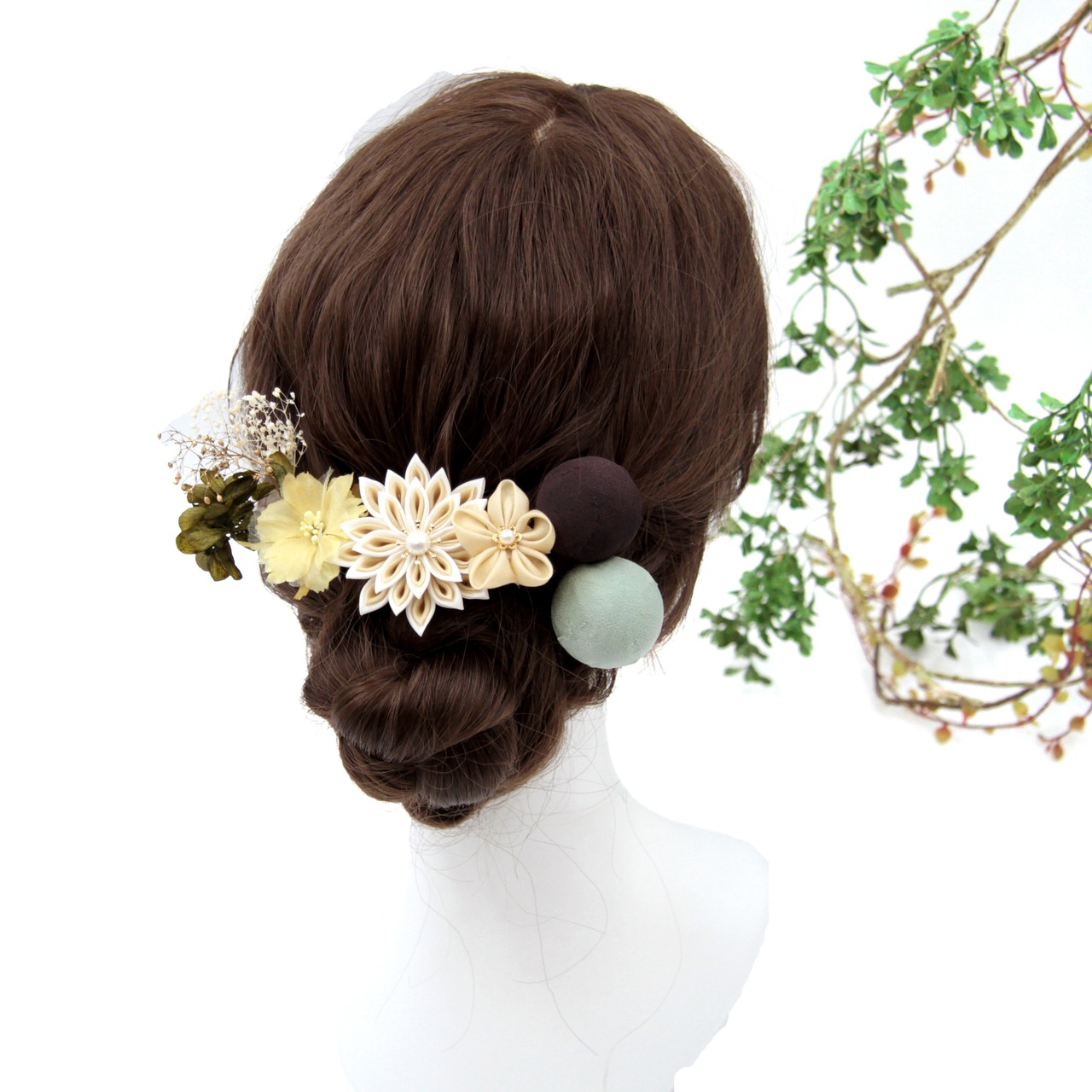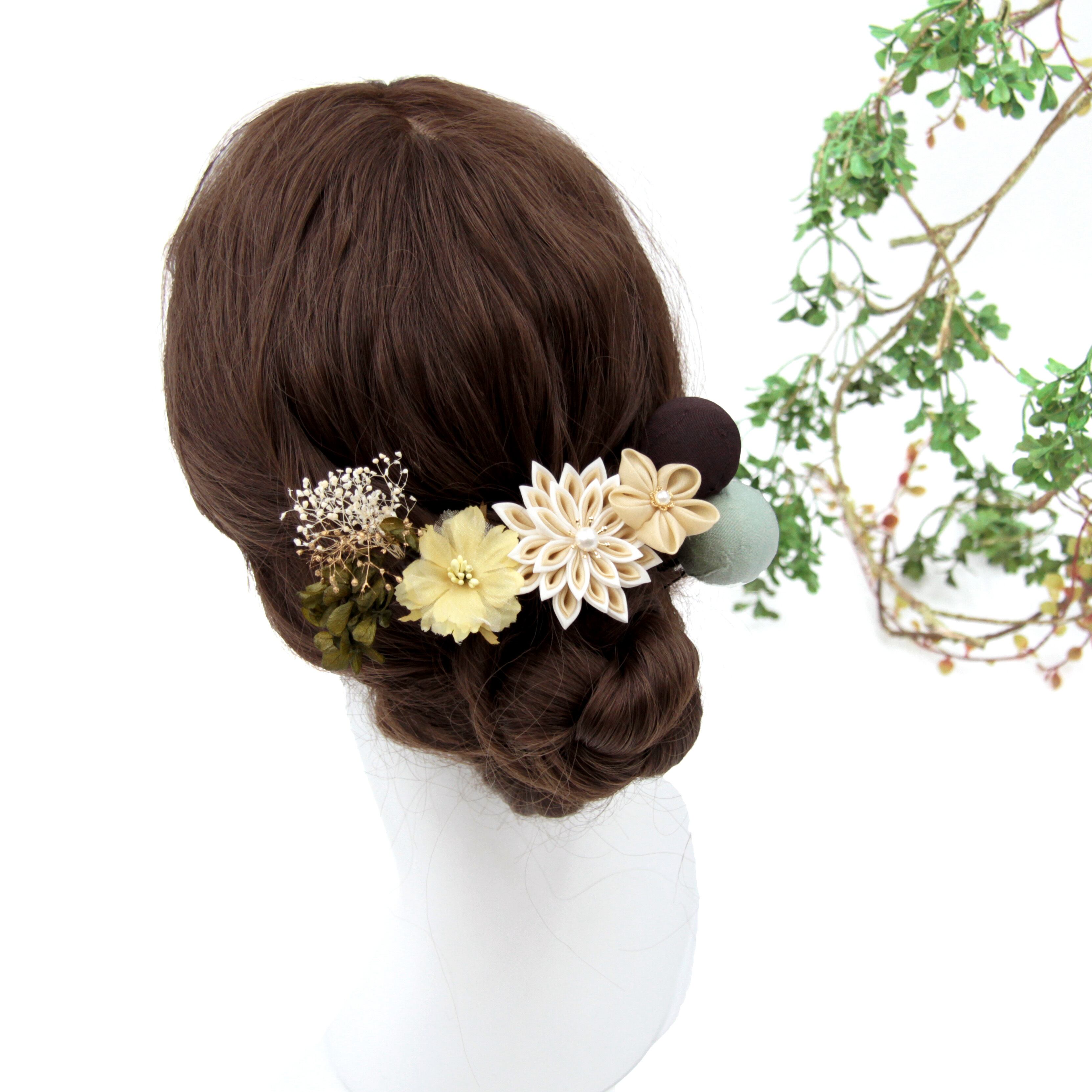 おしゃれな色合いの髪飾り。