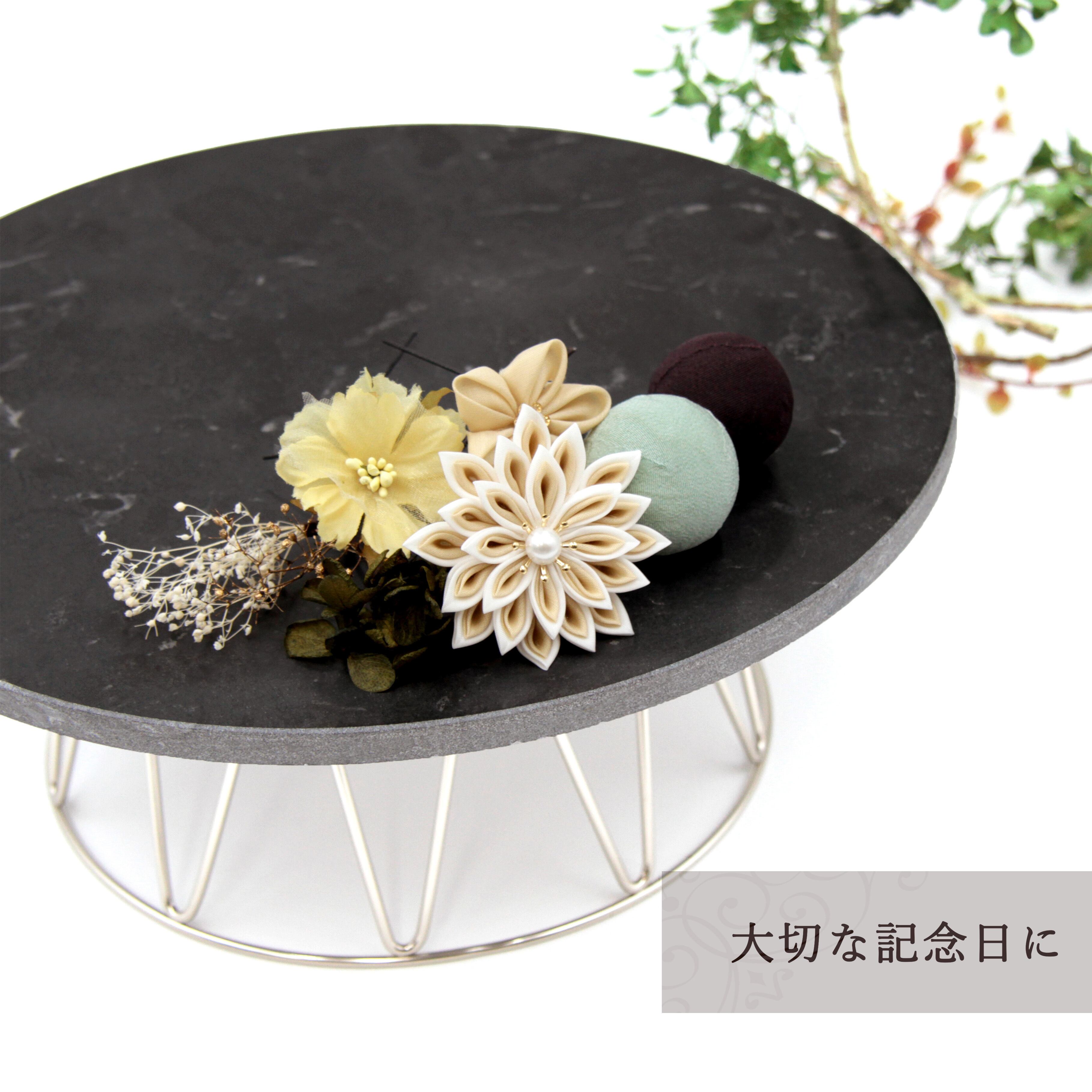 ※ドライフラワー・つまみ細工は非常に繊細です。丁寧にお包みして発送することを心がけておりますが、配送過程でお花によっては花落ちなどがある事がございます。ご了承ください。