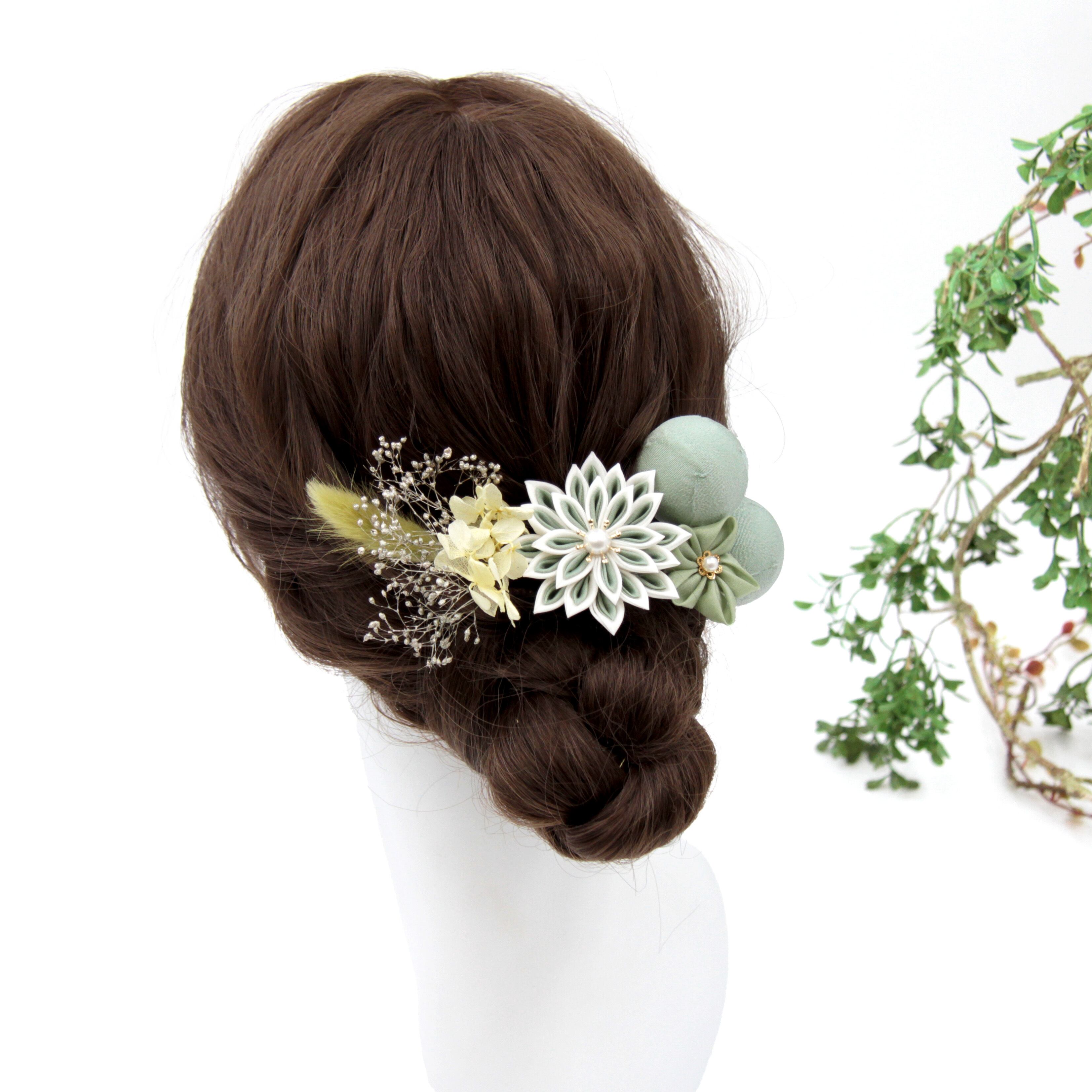 髪飾り 髪飾りセット 剣つまみ つまみ細工 ドライフラワー ブルー グリーン 成人式 振袖 卒業式 袴 七五三 WA-K-18