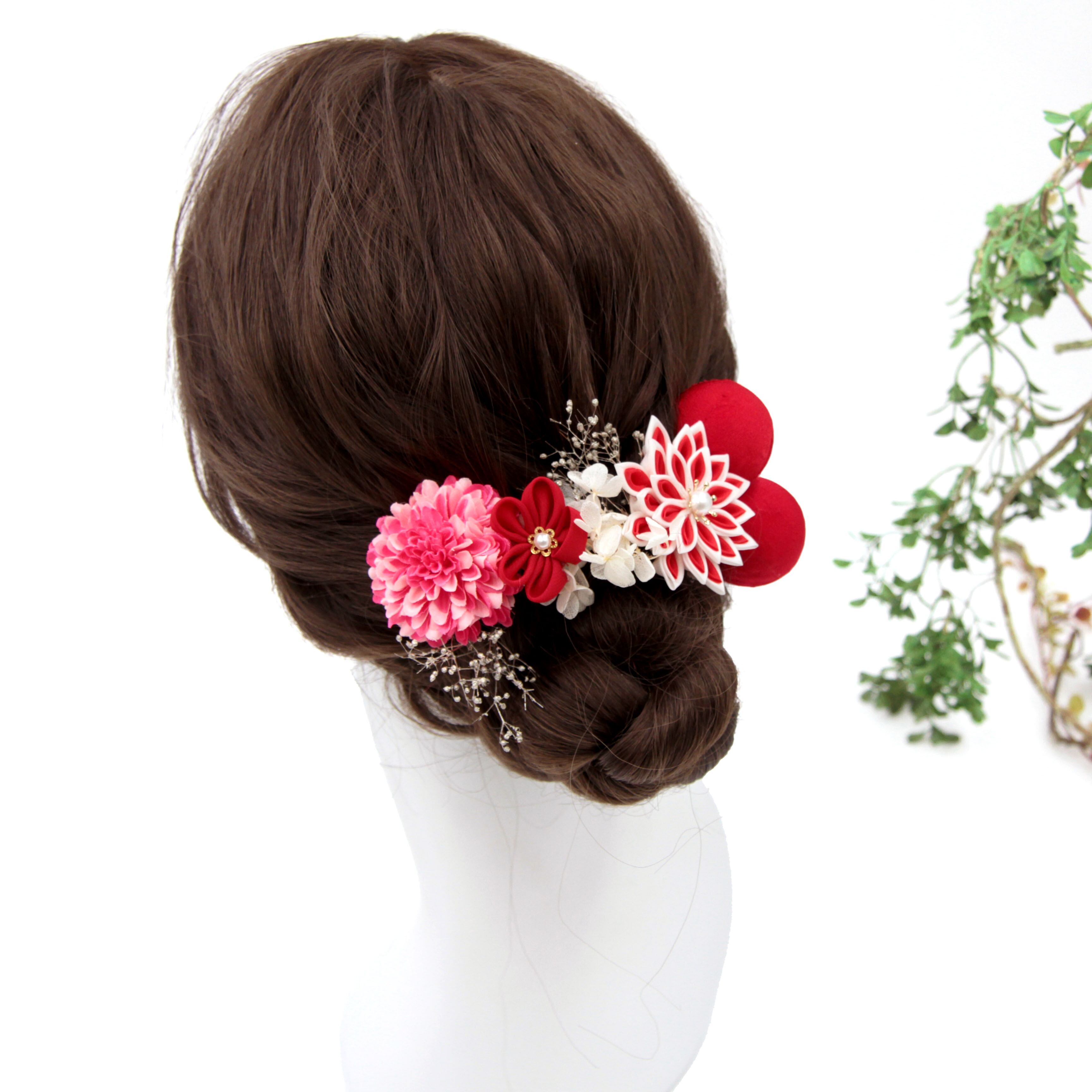 ハンドメイドの剣つまみやつまみ細工を使用した、オリジナル髪飾りです。