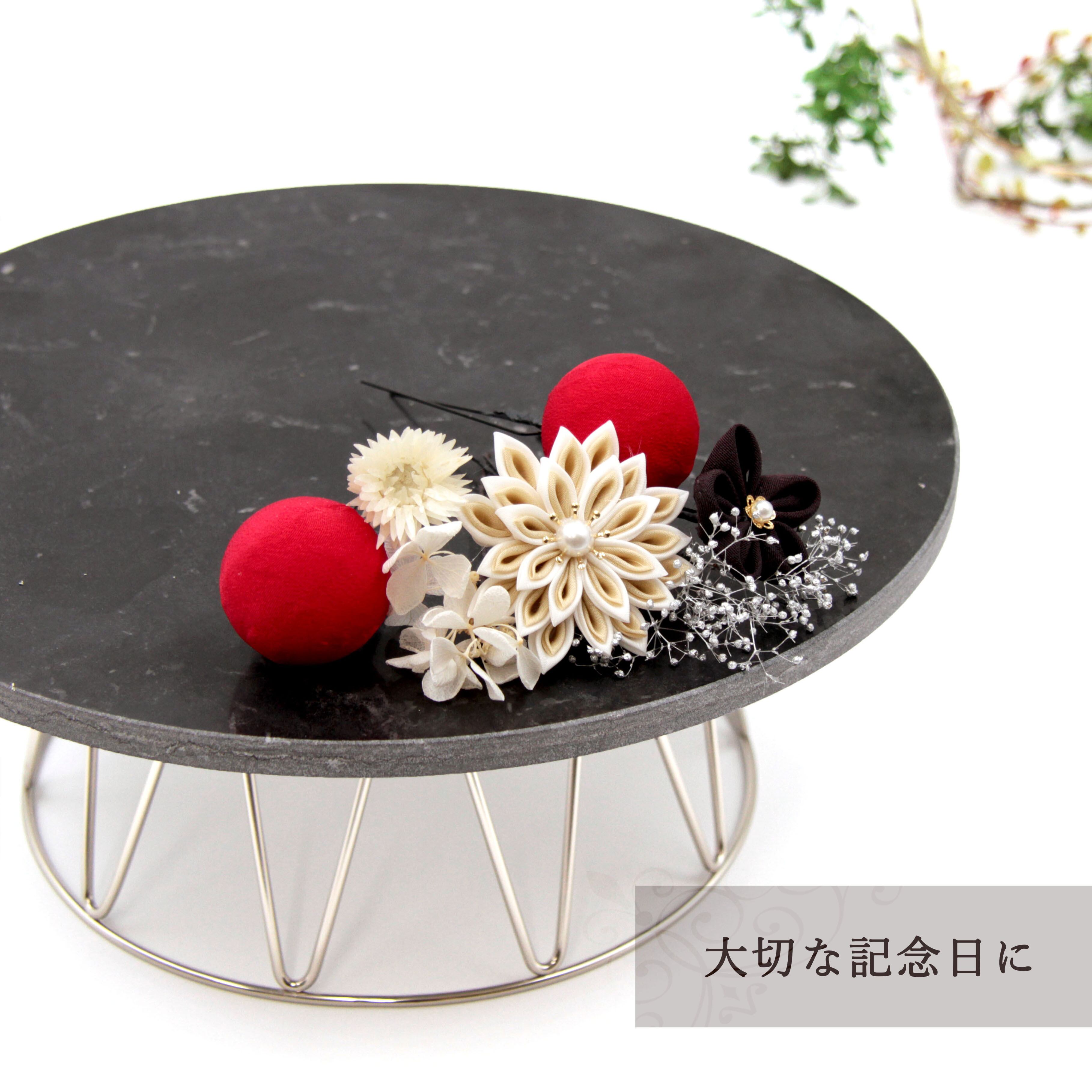 ※ドライフラワー・つまみ細工は非常に繊細です。丁寧にお包みして発送することを心がけておりますが、配送過程でお花によっては花落ちなどがある事がございます。ご了承ください。