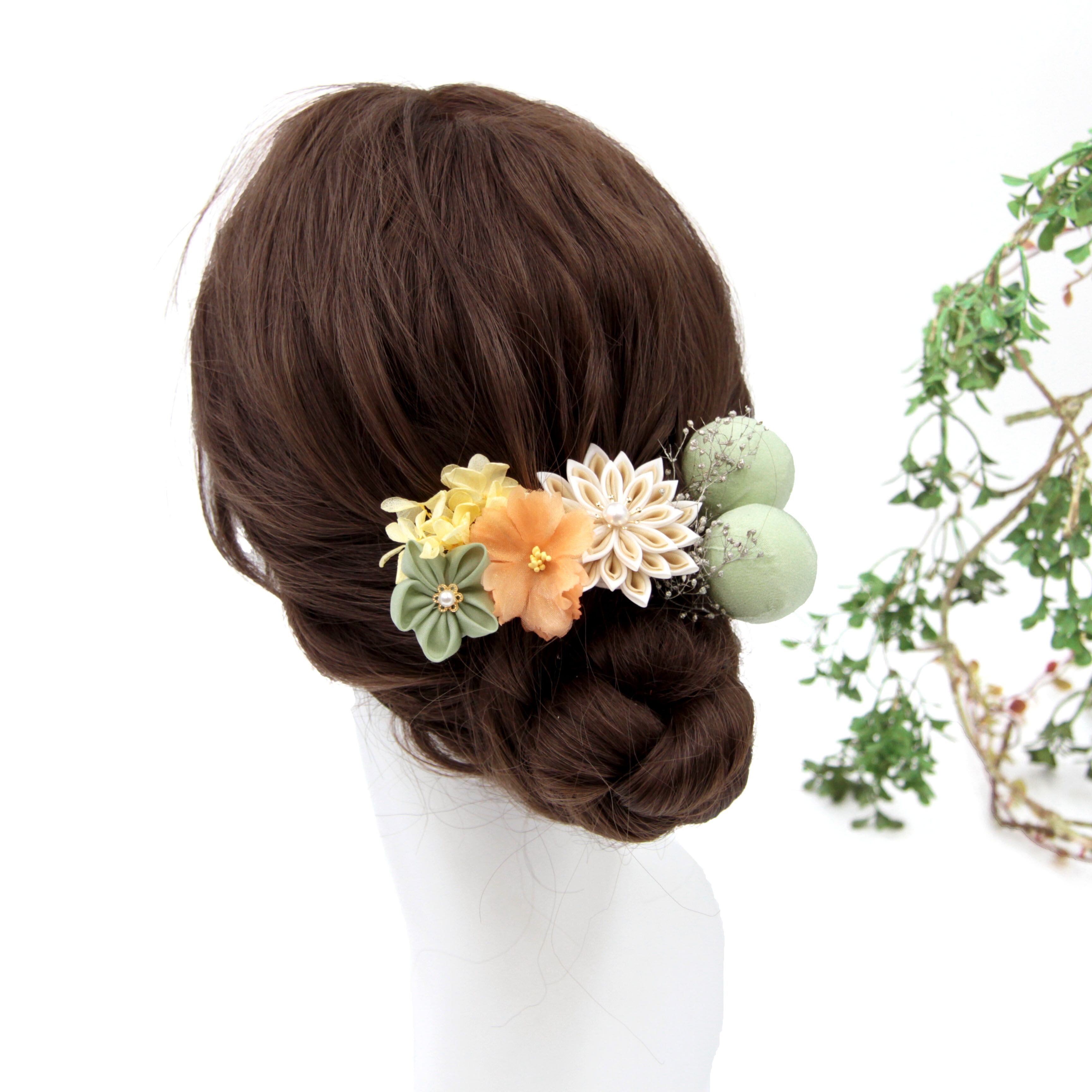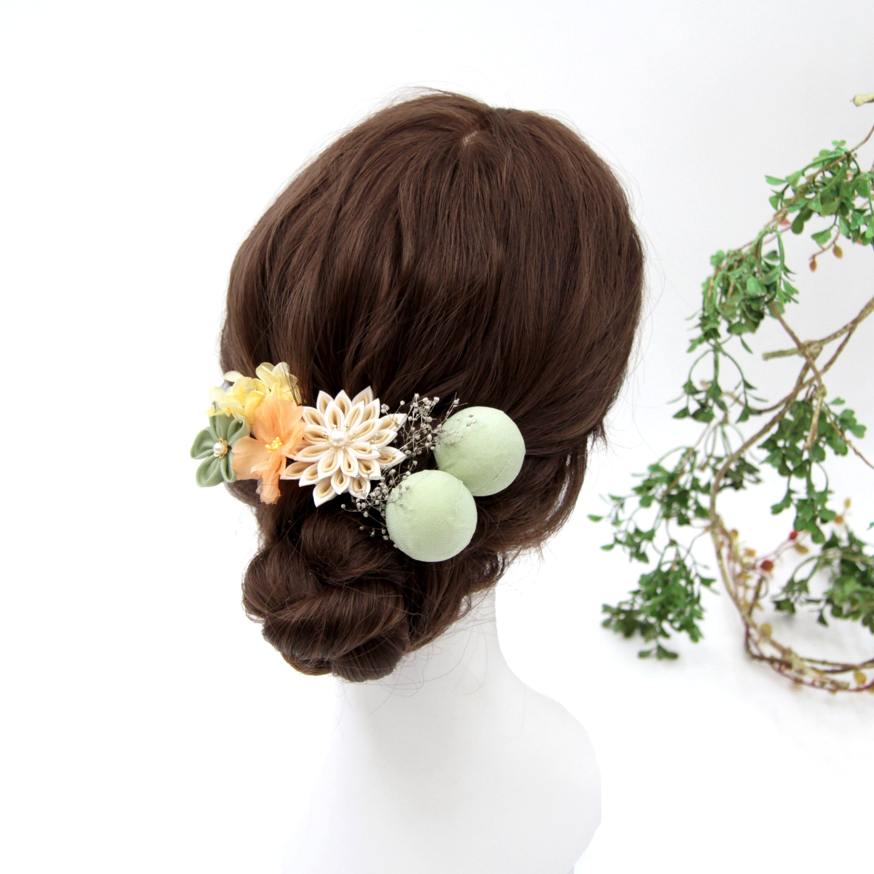 淡い色合いが優しく繊細な雰囲気を醸し出す髪飾り。
