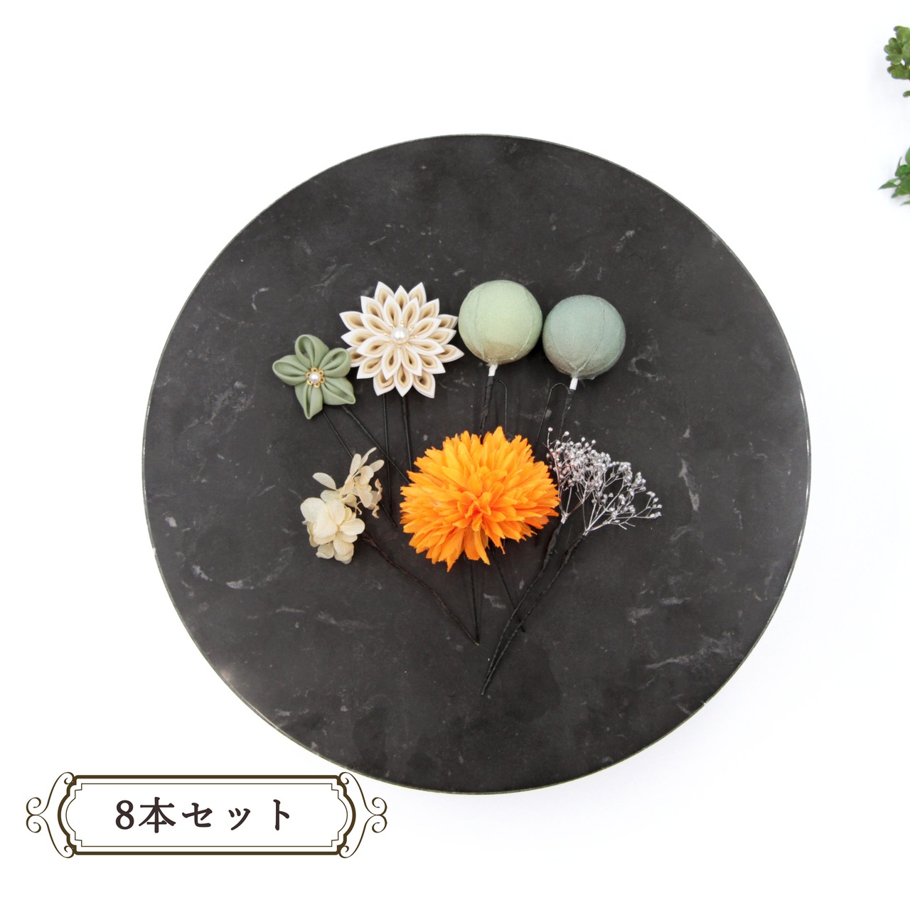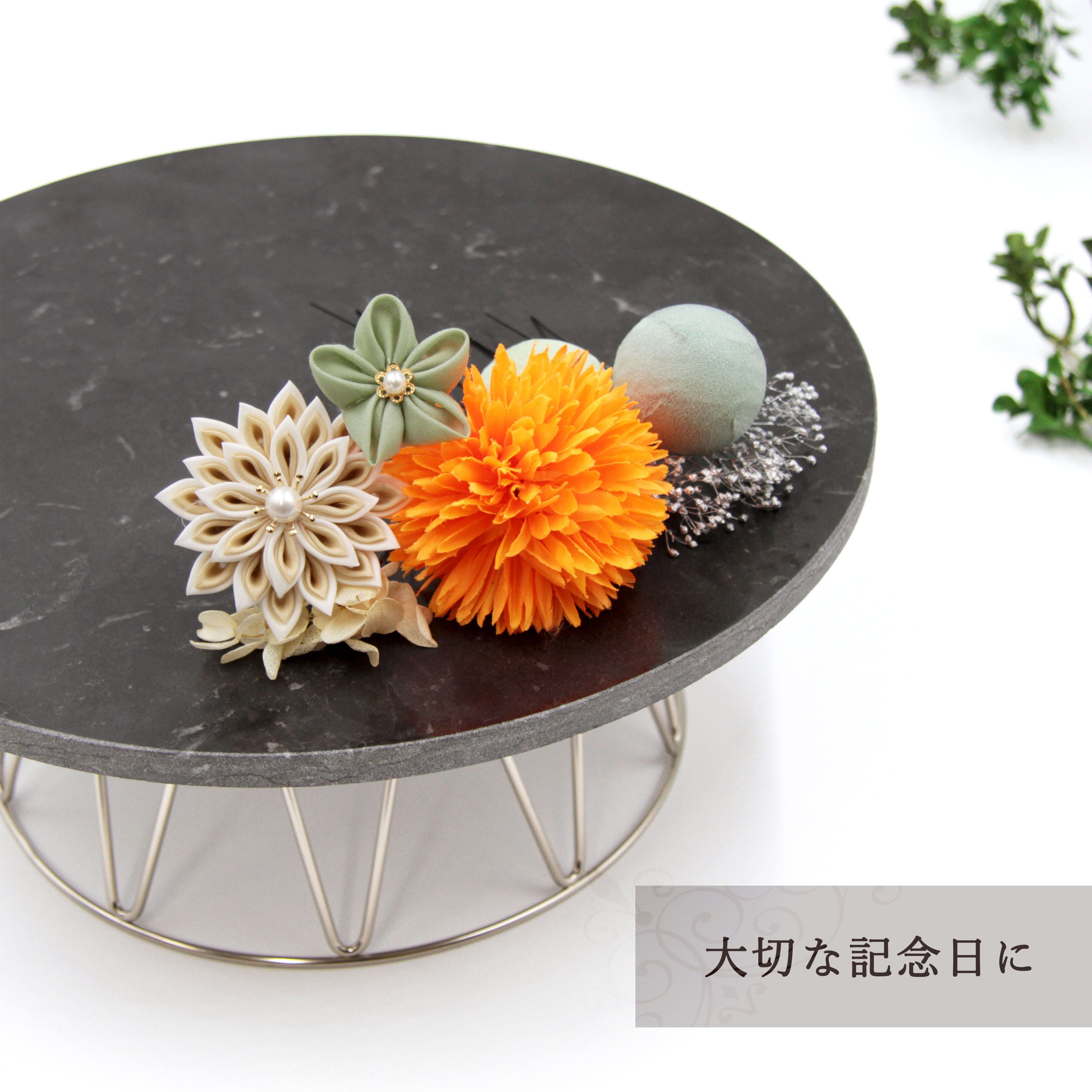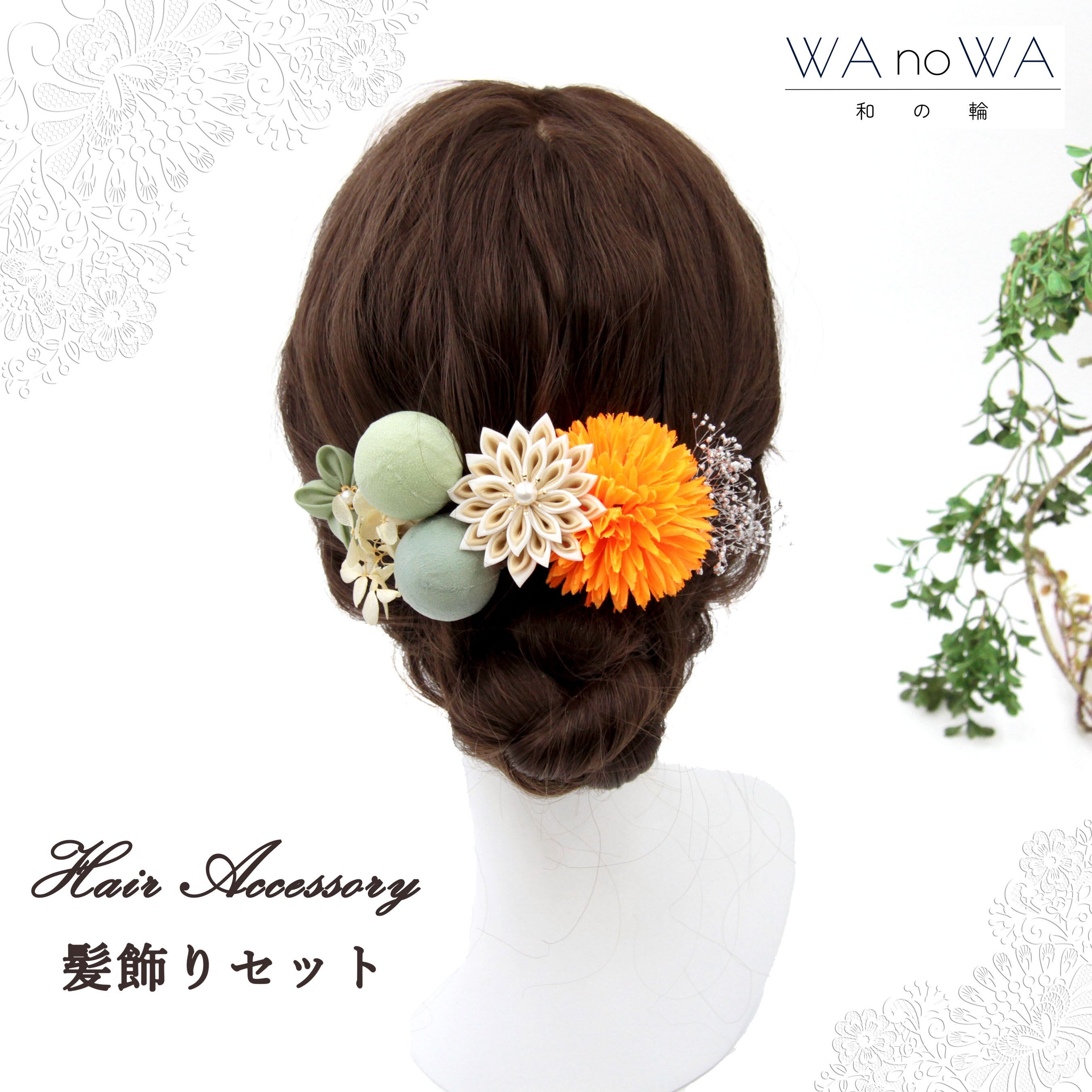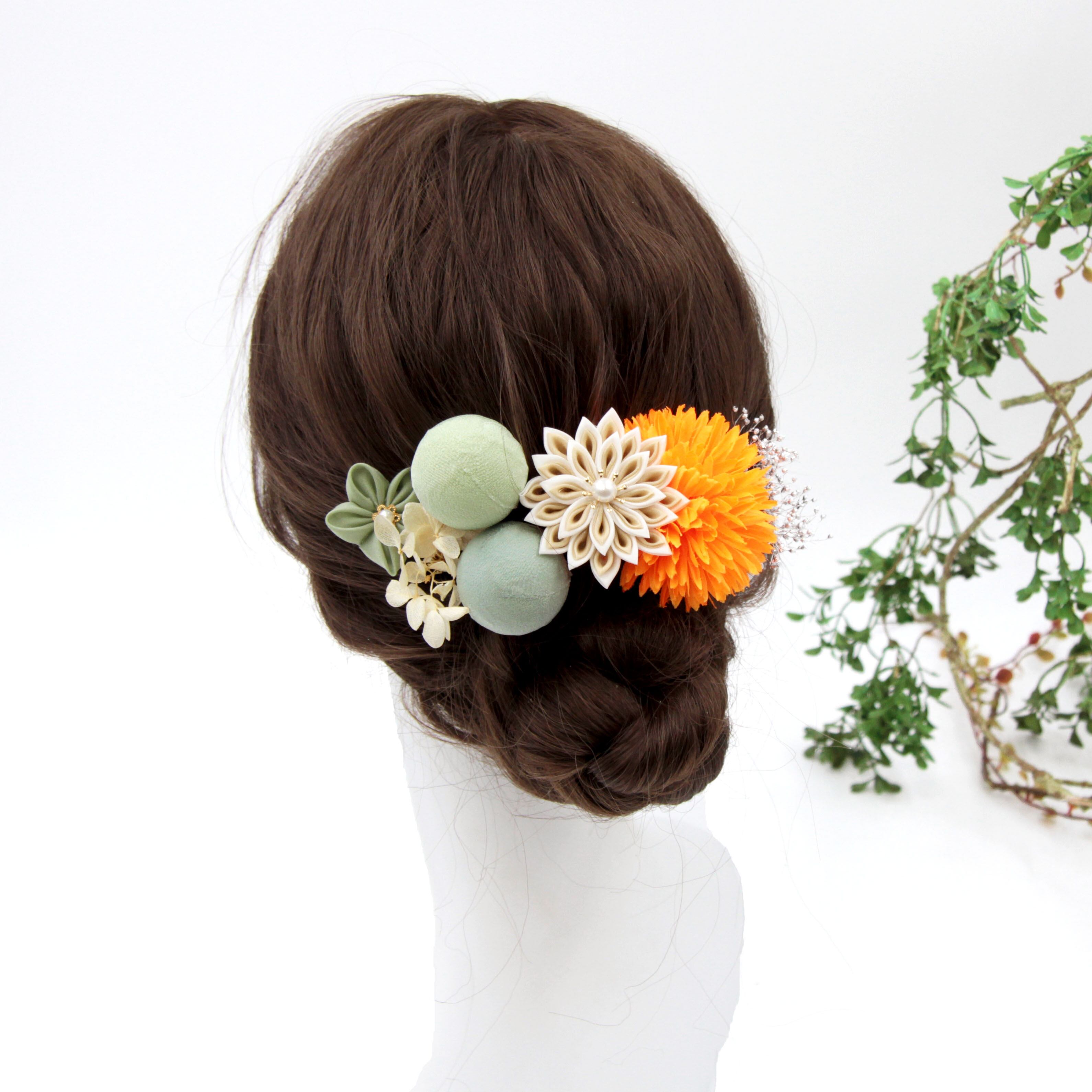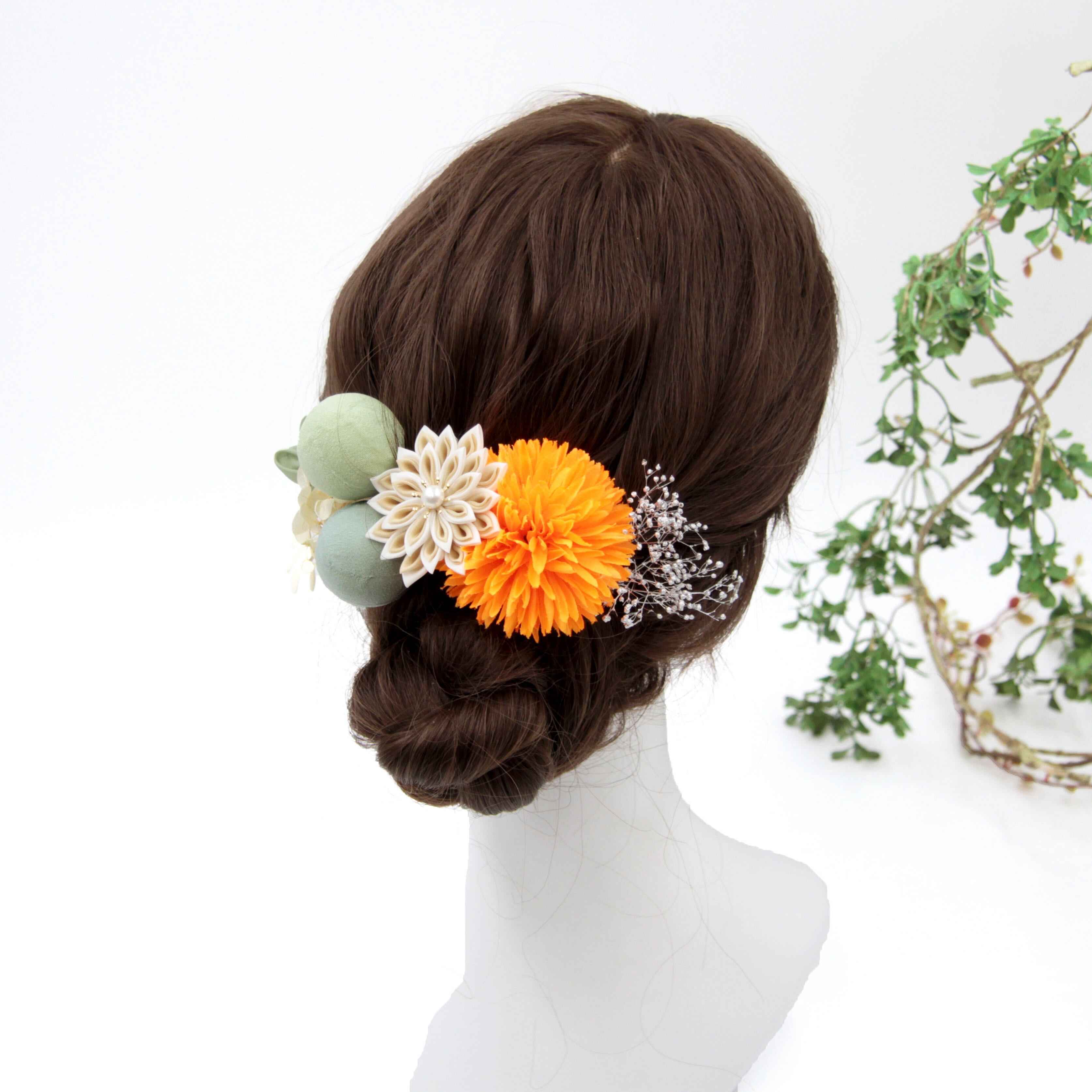オレンジのビビッドピンポンマムがポイントの髪飾りです。