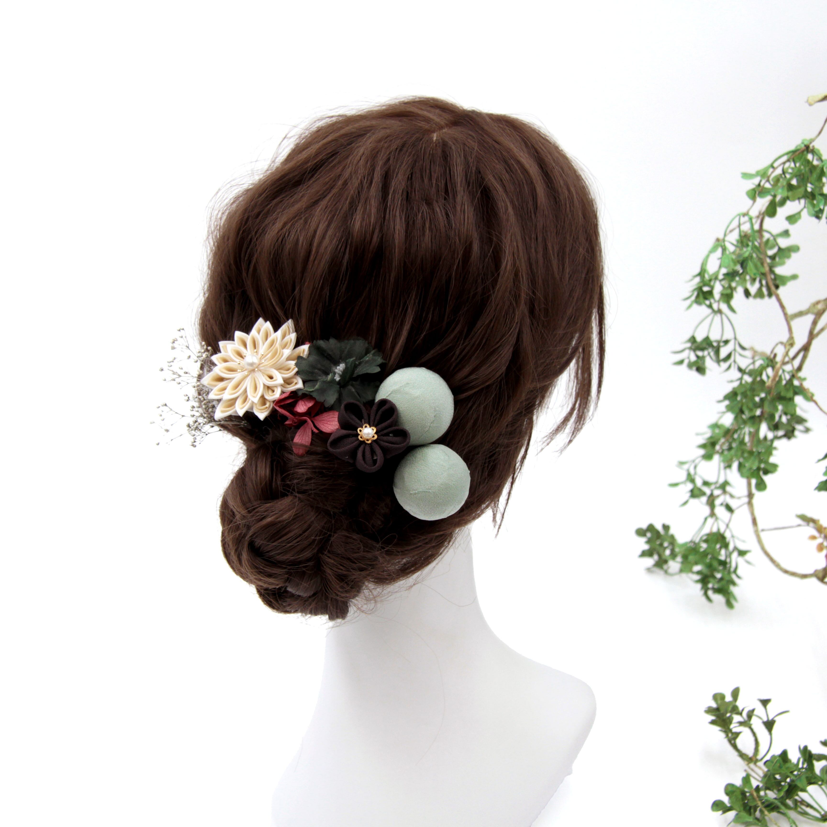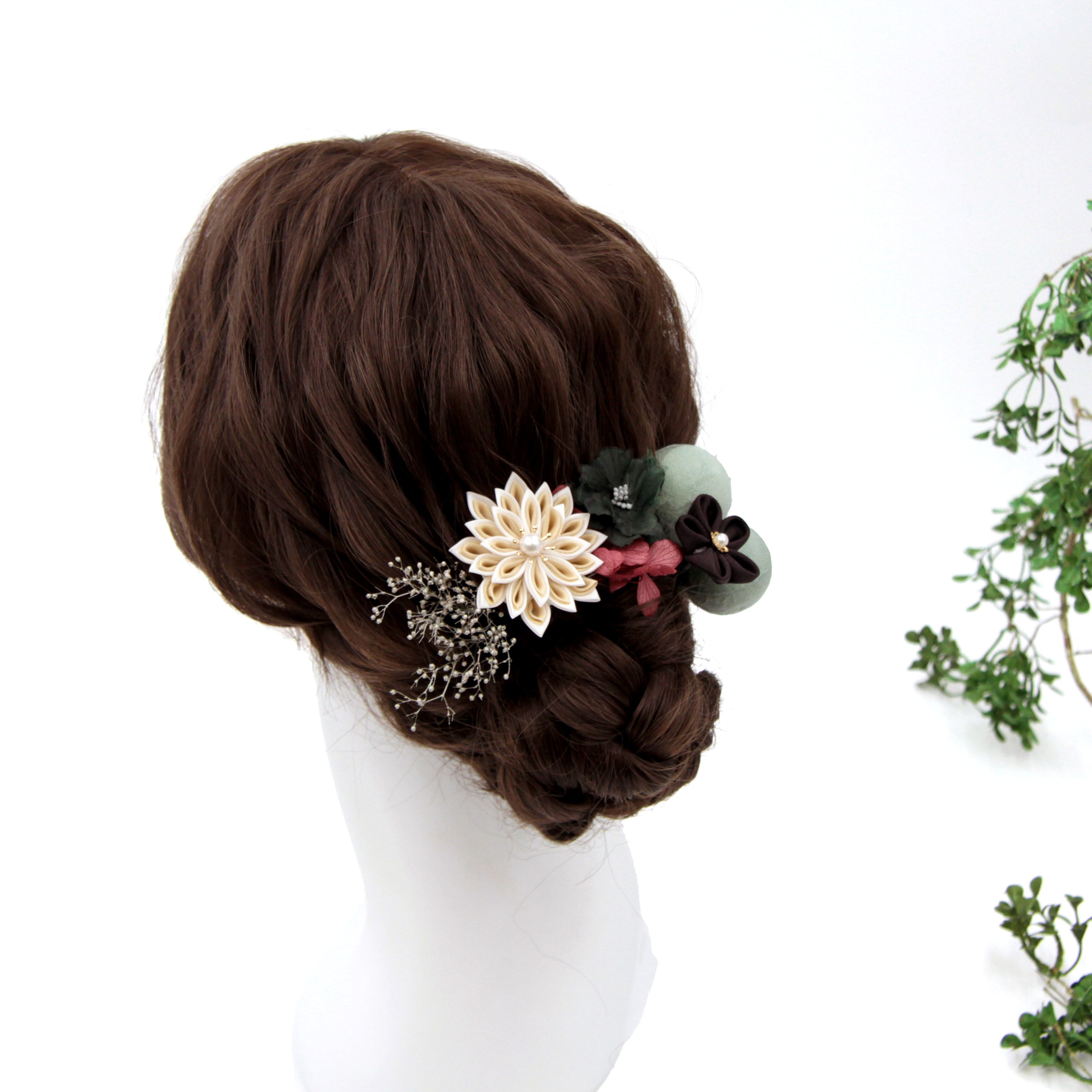 ハンドメイドの剣つまみやつまみ細工を使用した、オリジナル髪飾りです。