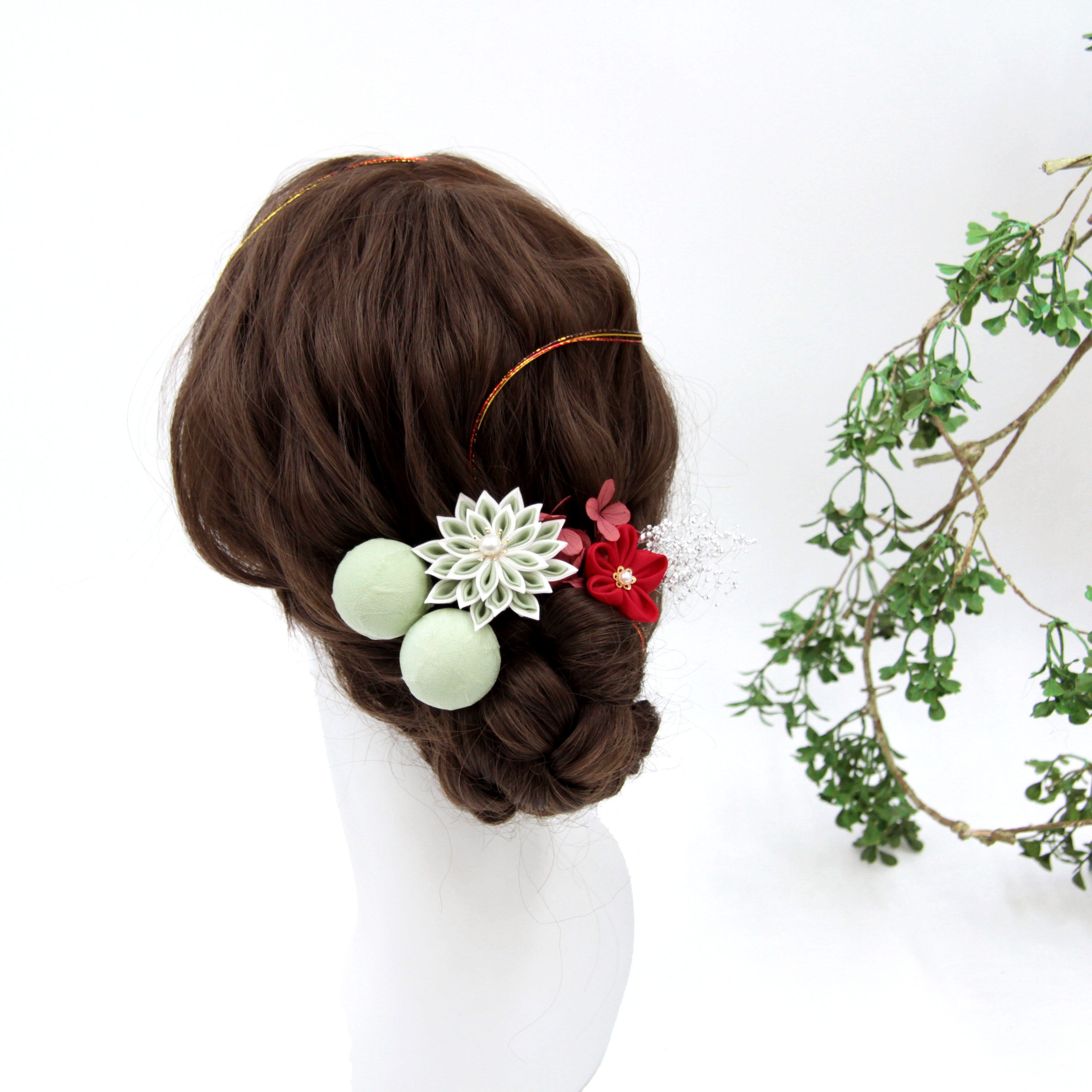 ハンドメイドの剣つまみやつまみ細工を使用した、オリジナル髪飾りです。