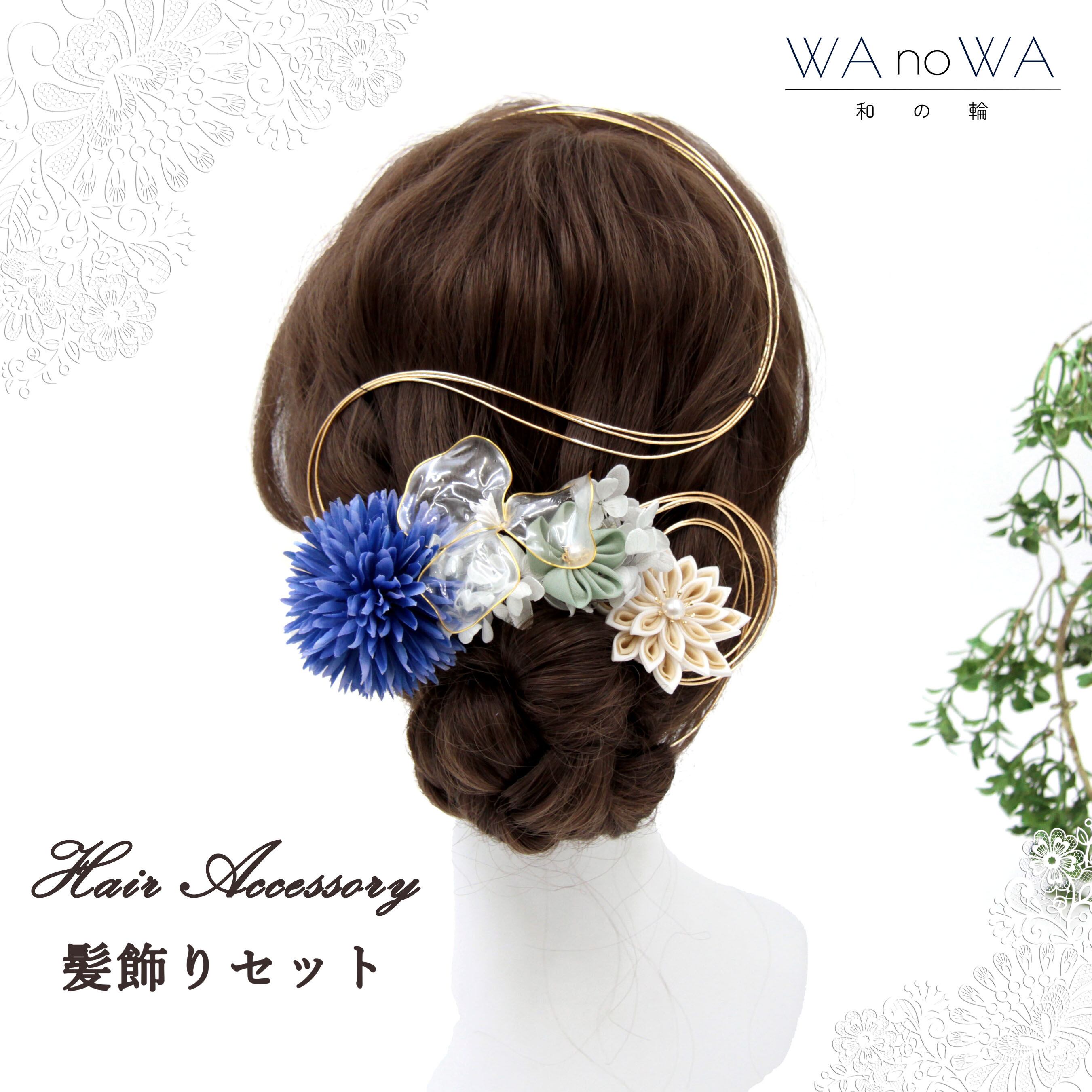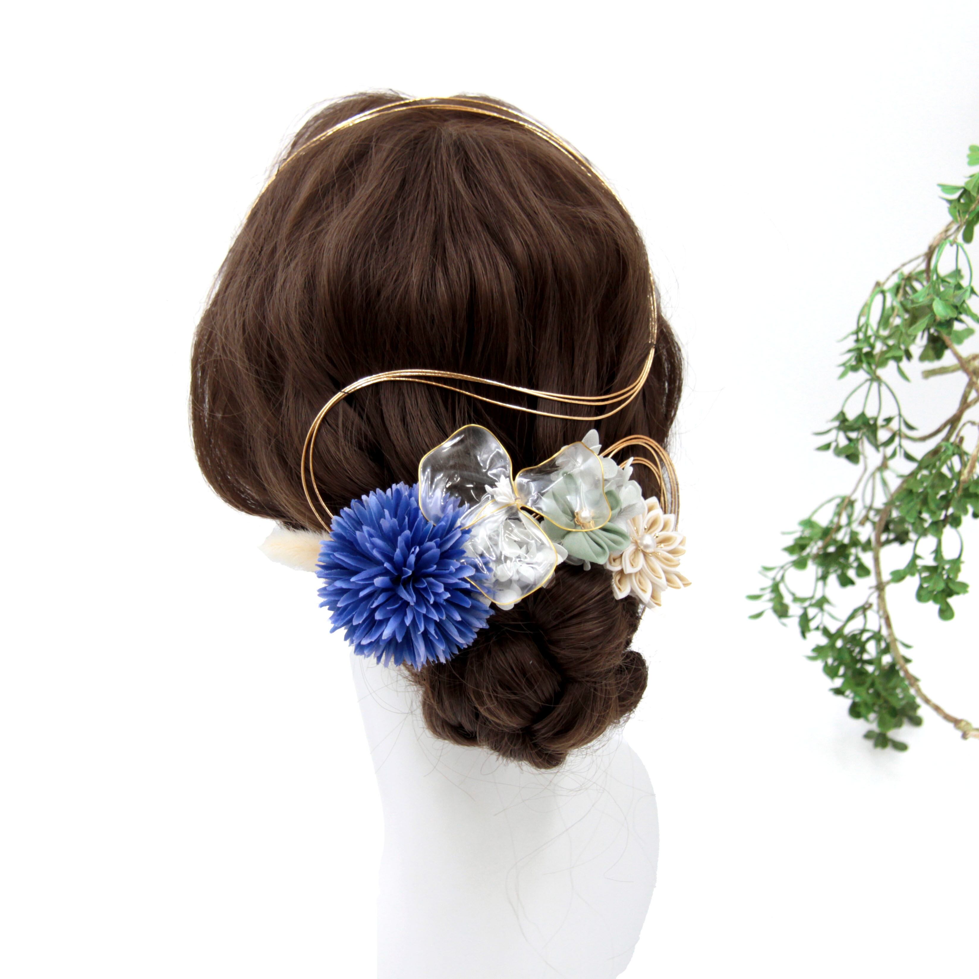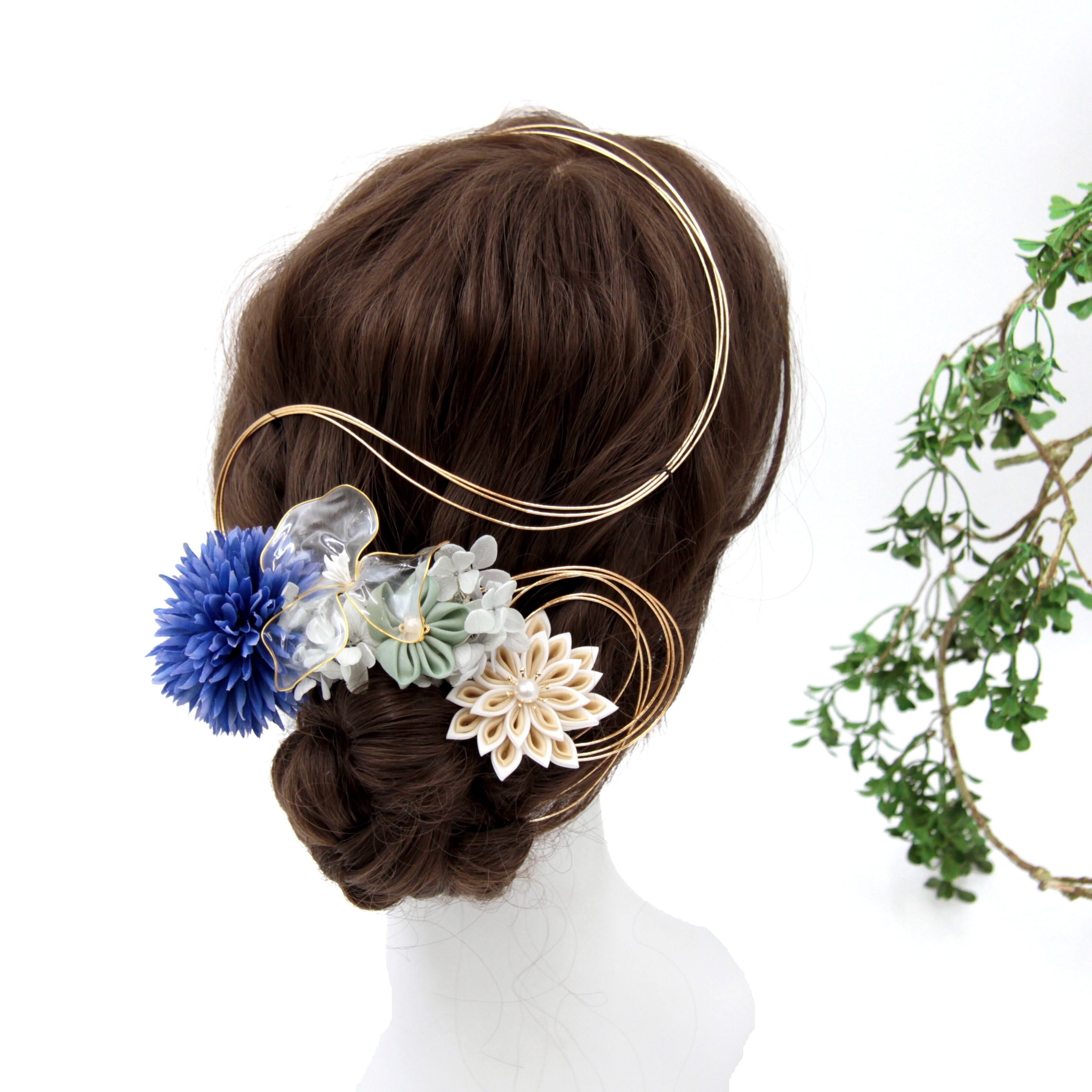 ブルー×ゴールドがクールでゴージャスな印象の髪飾り。