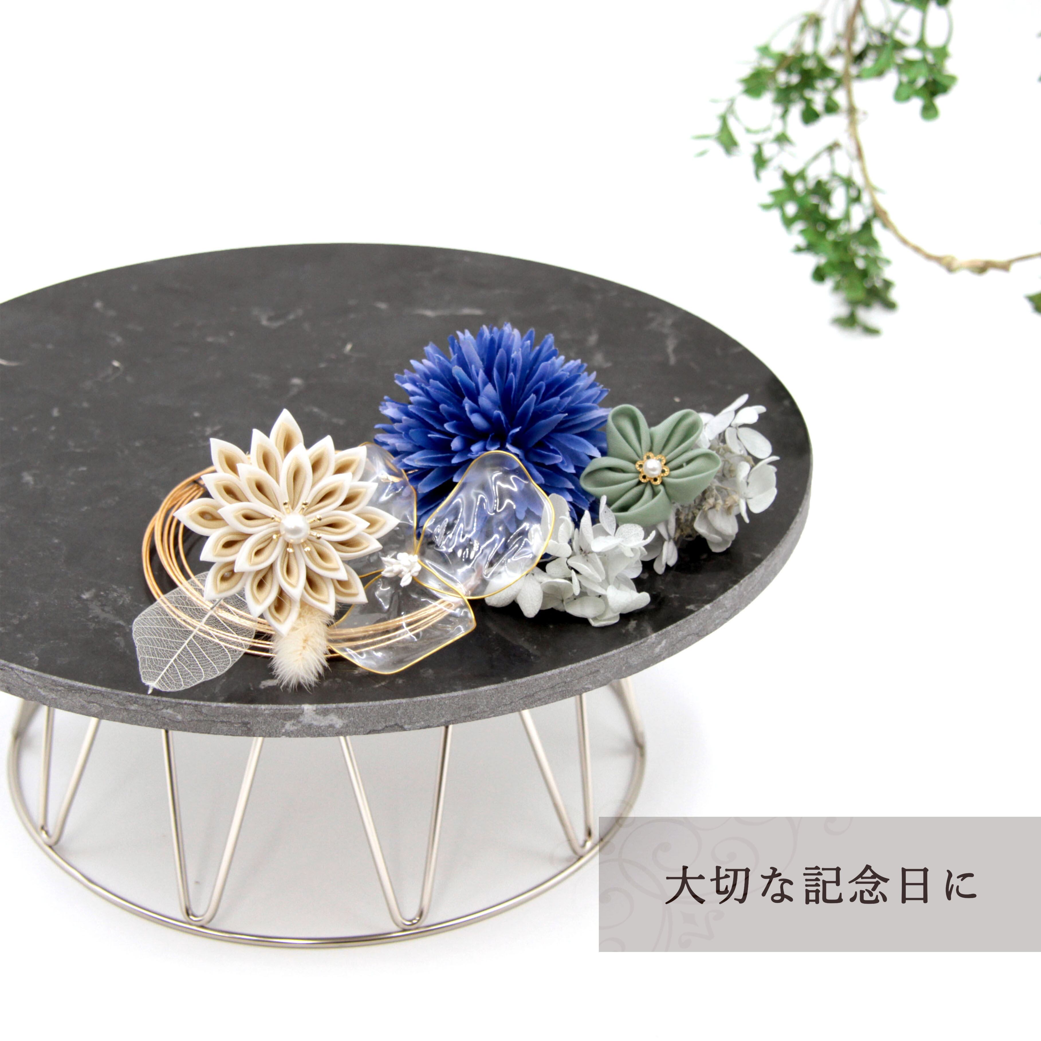 ※ドライフラワー・つまみ細工は非常に繊細です。丁寧にお包みして発送することを心がけておりますが、配送過程でお花によっては花落ちなどがある事がございます。ご了承ください。