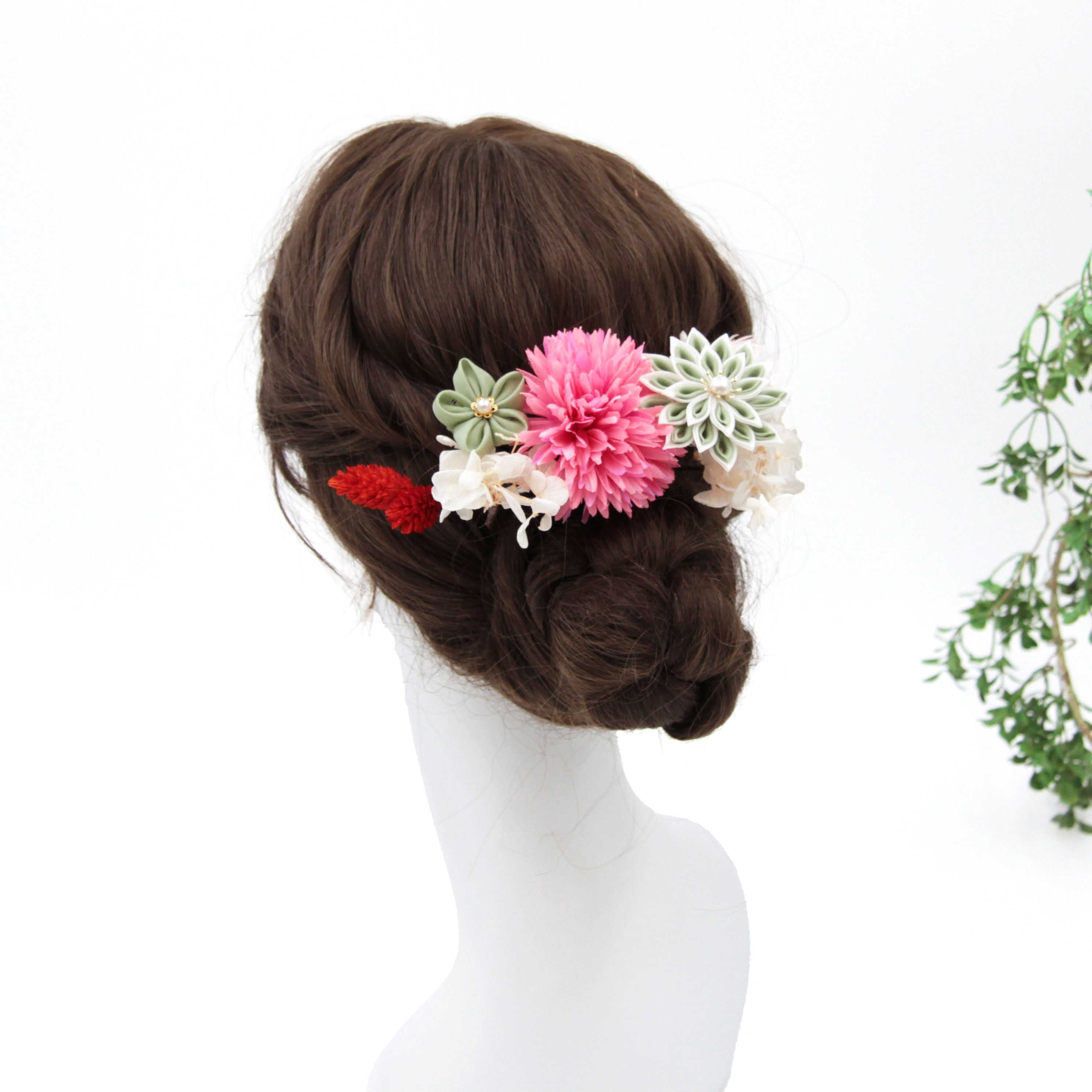 ハンドメイドの剣つまみやつまみ細工を使用した、オリジナル髪飾りです。