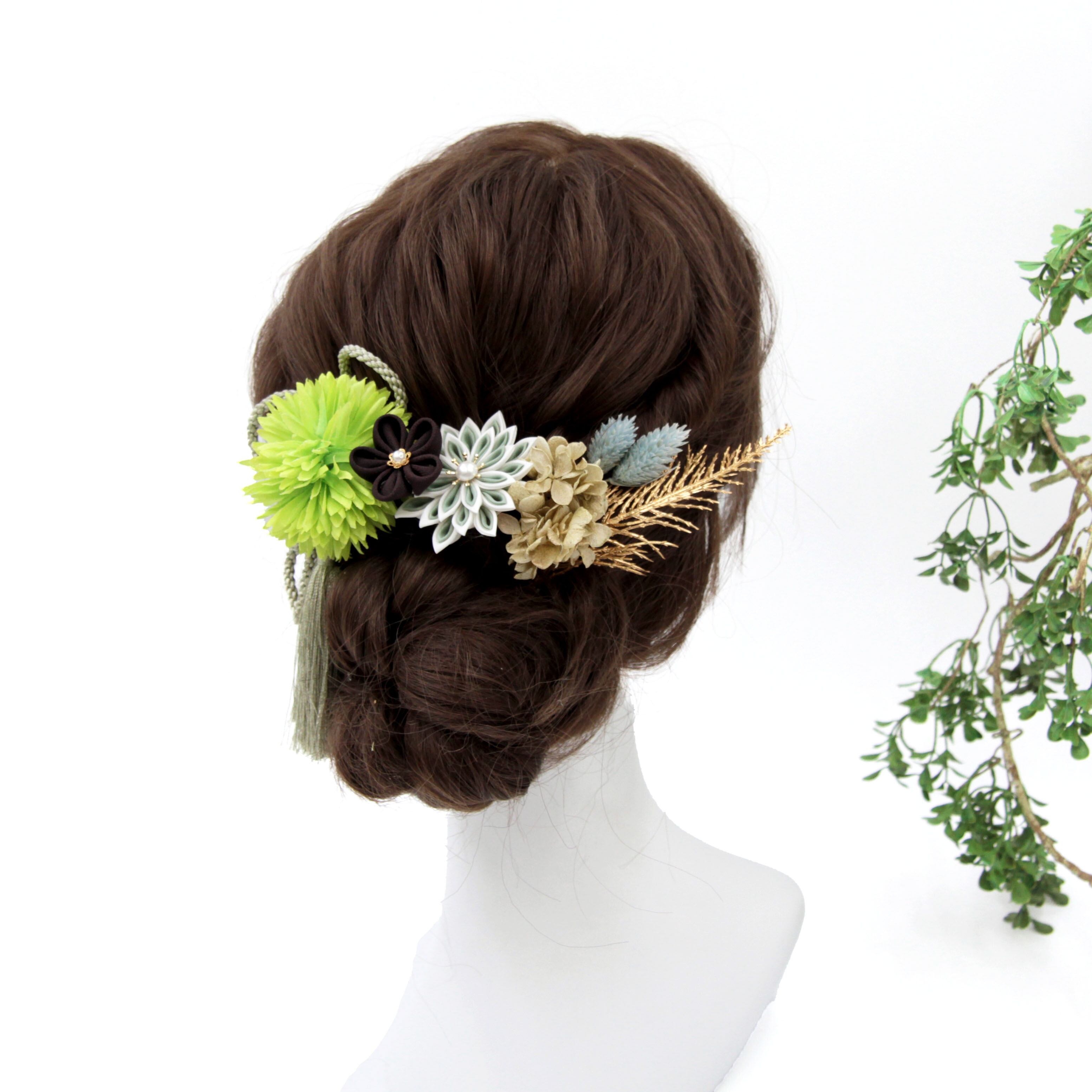 ハンドメイドの剣つまみやつまみ細工を使用した、オリジナル髪飾りです。