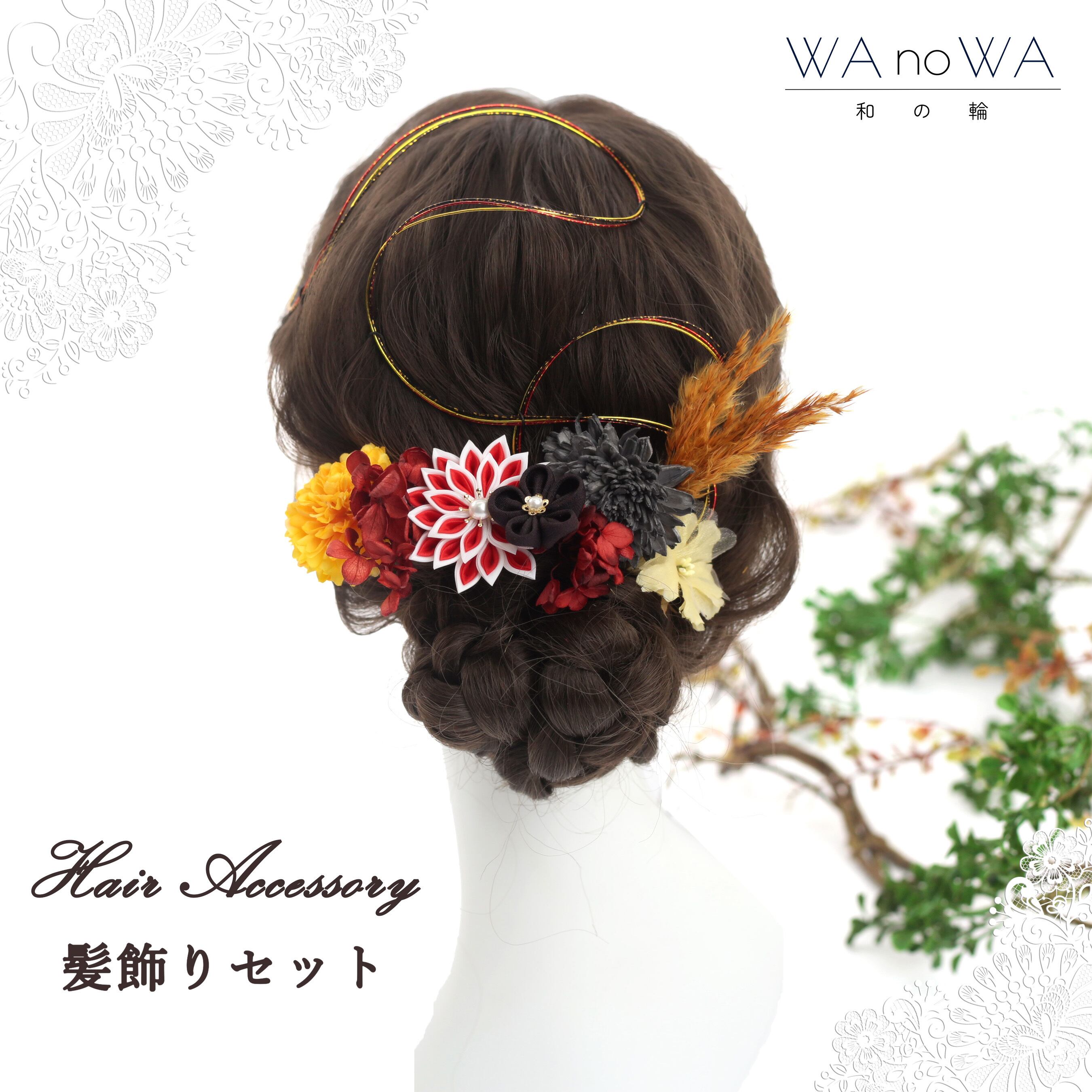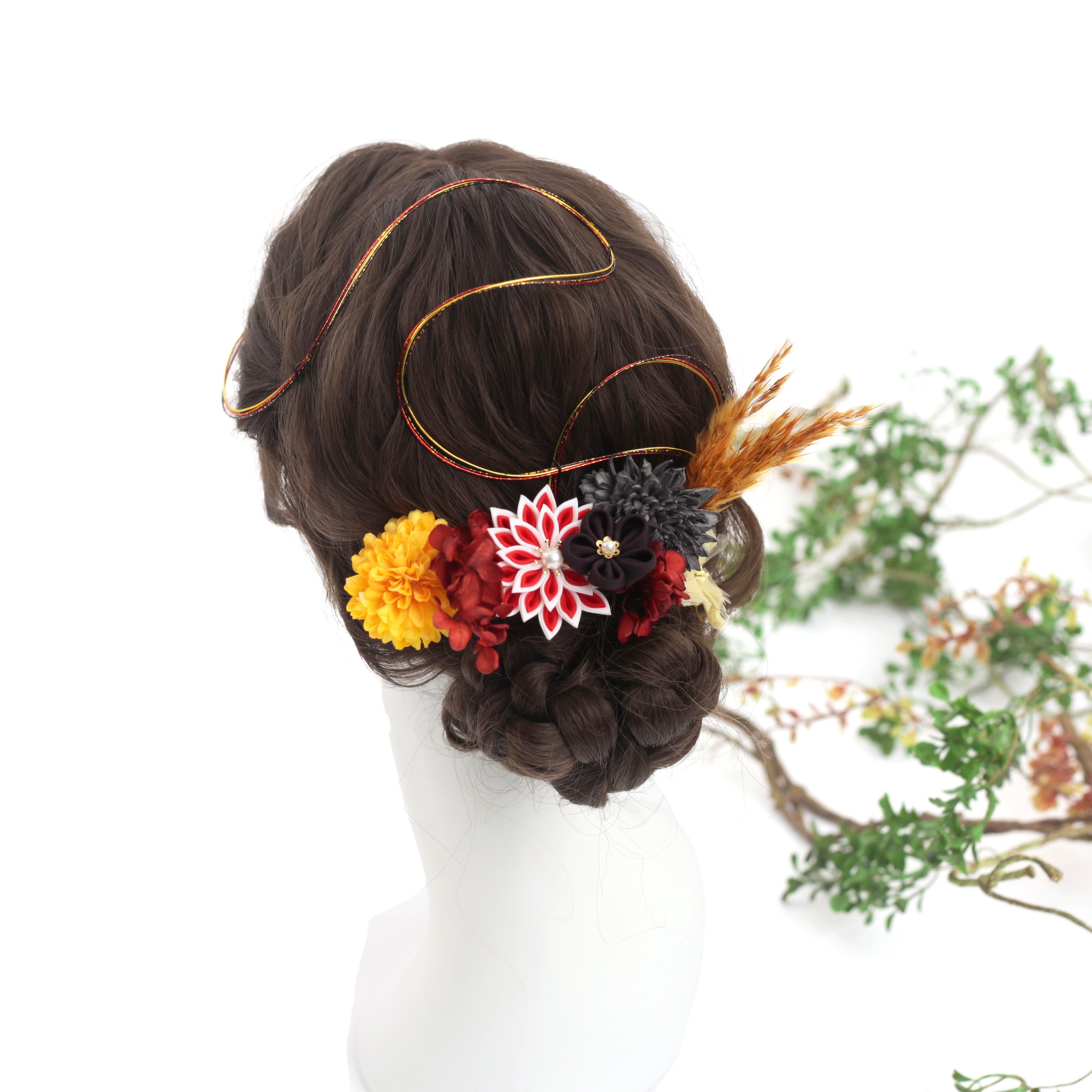 レッド×ブラックで大人っぽい印象の髪飾り。