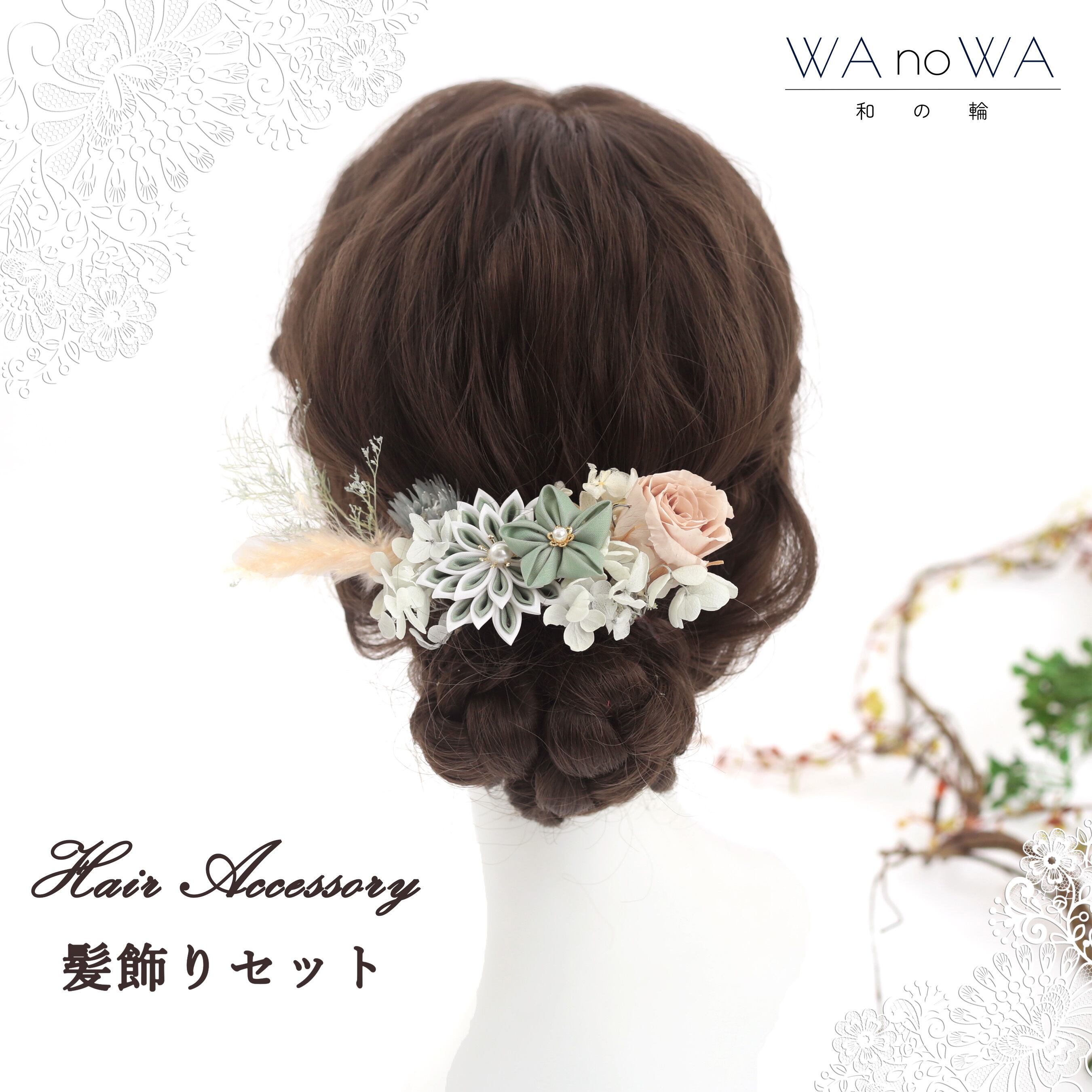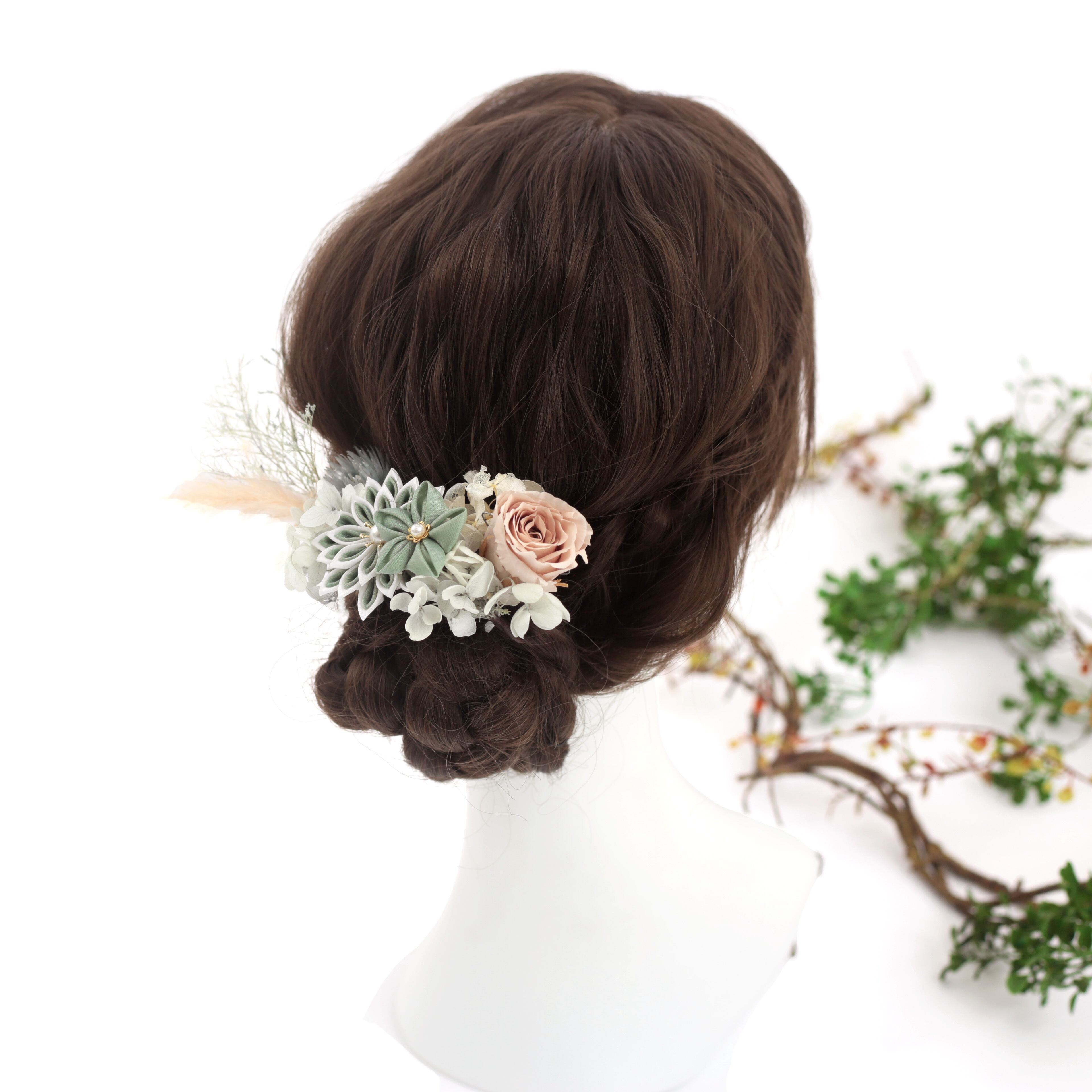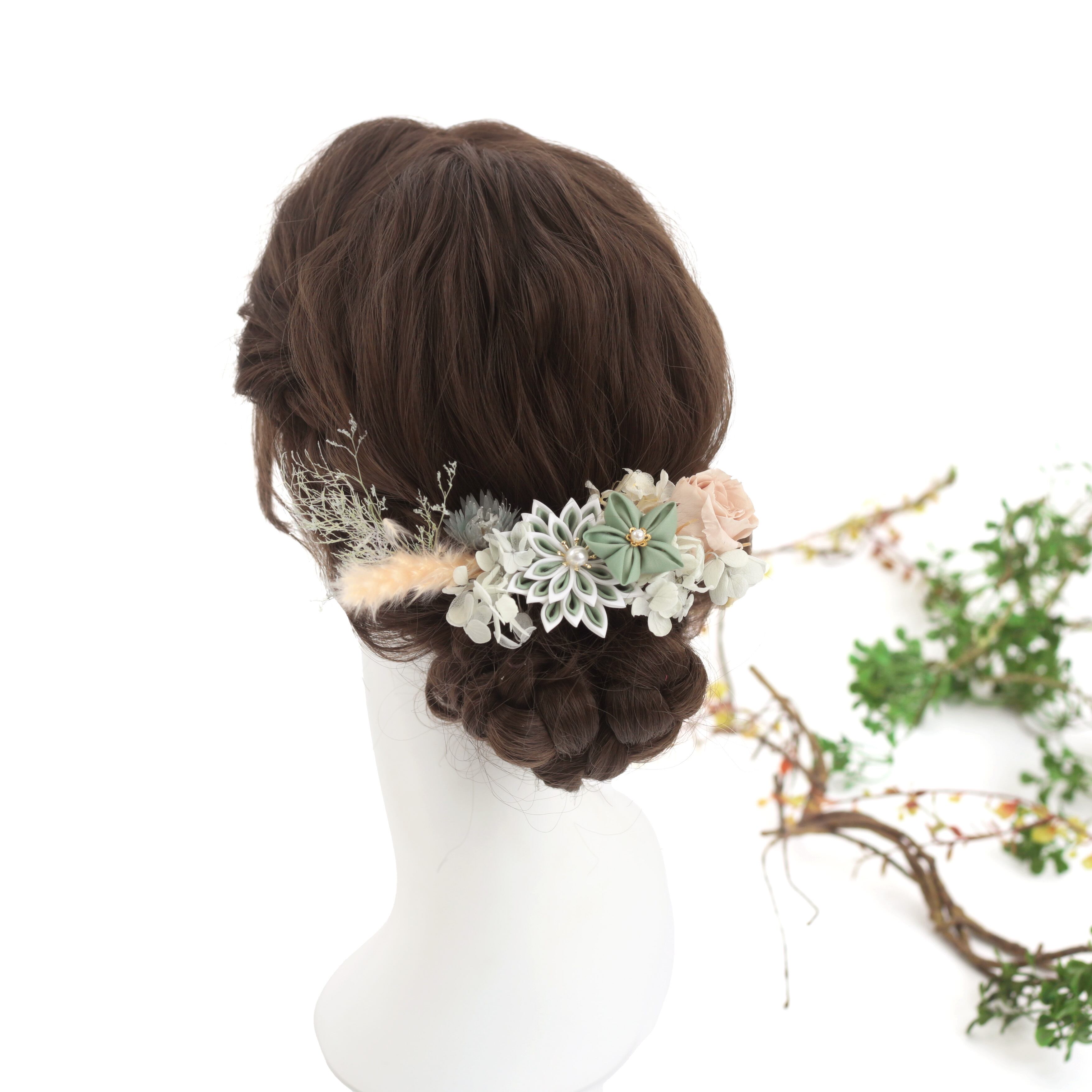 全体的に淡く優しい色合いでまとめた髪飾りです。