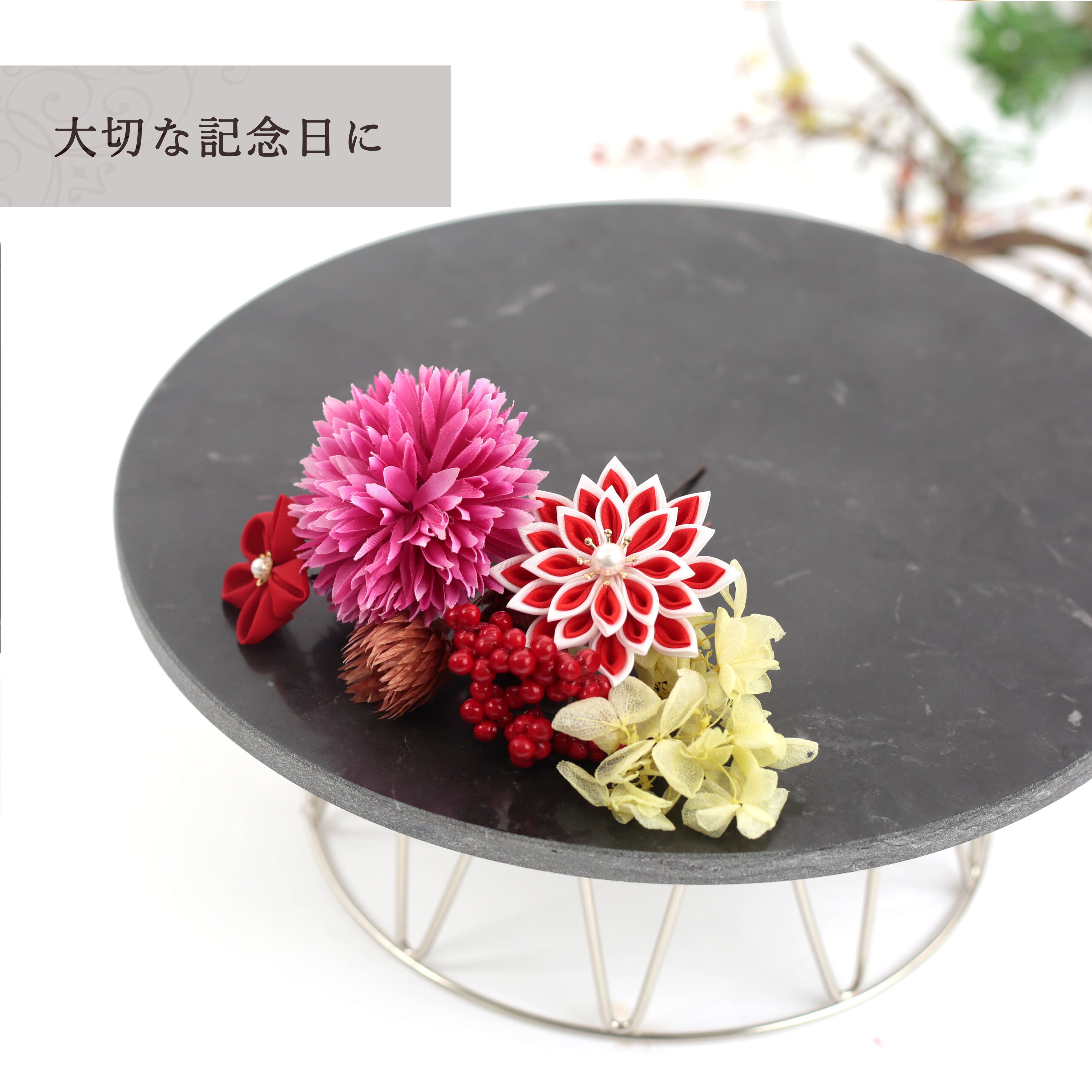 ※ドライフラワー・つまみ細工は非常に繊細です。丁寧にお包みして発送することを心がけておりますが、配送過程でお花によっては花落ちなどがある事がございます。ご了承ください。