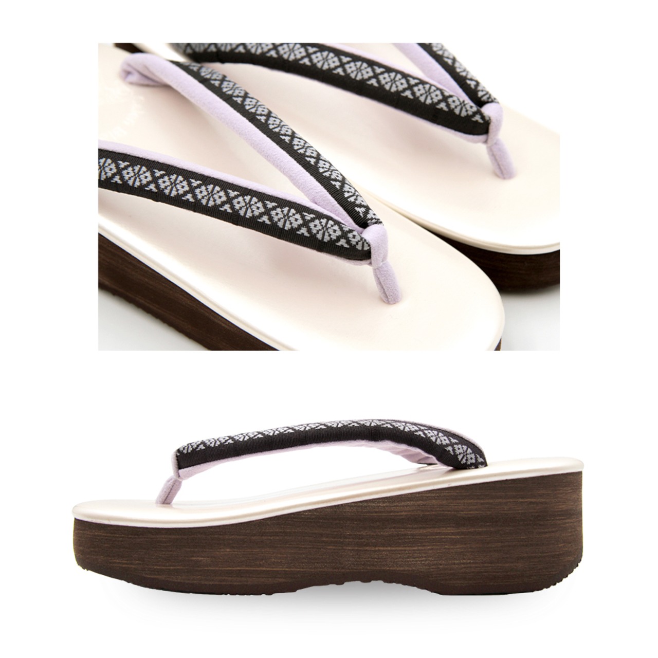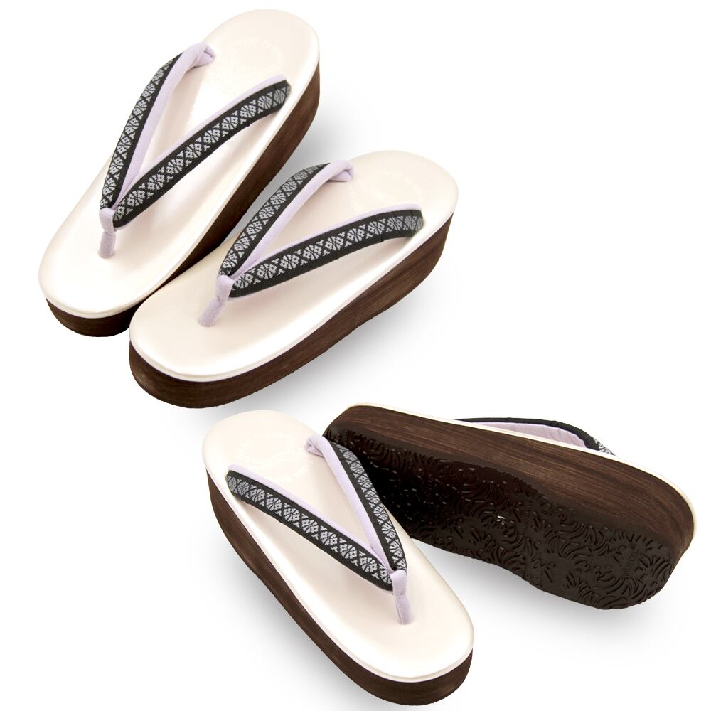 草履 カフェ草履 カレンブロッソ Calen Blosso 菱屋 紫 白 博多織 華皿 献上柄 カジュアル用 和装 小紋 紬 浴衣 Mサイズ WA-Z-26