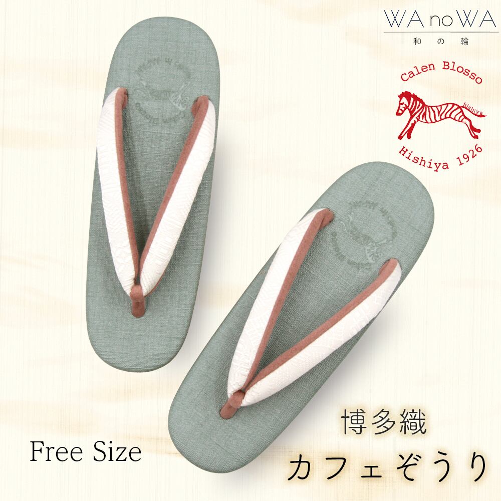 草履 カフェ草履 カレンブロッソ Calen Blosso 菱屋 ミントグリーン 博多織 華皿 カジュアル用 和装 小紋 紬 浴衣 フリーサイズ WA-Z-37 | WA by Petal Prier