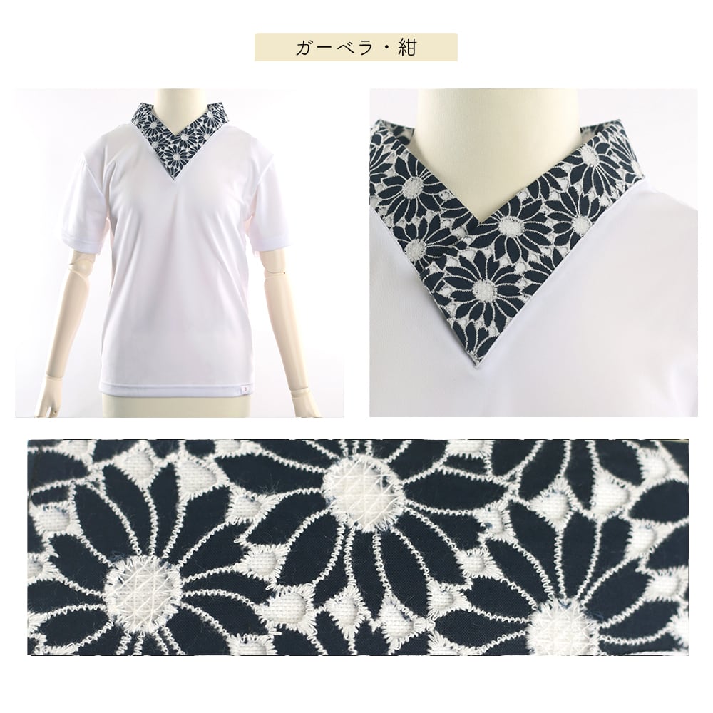 半衿は紺のガーベラの花柄でオシャレに着こなせます。