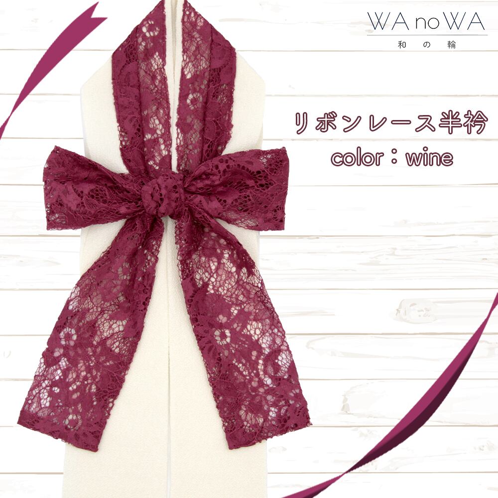 大きめのレース素材のリボンが付いた、おしゃれで可愛らしい半衿です。