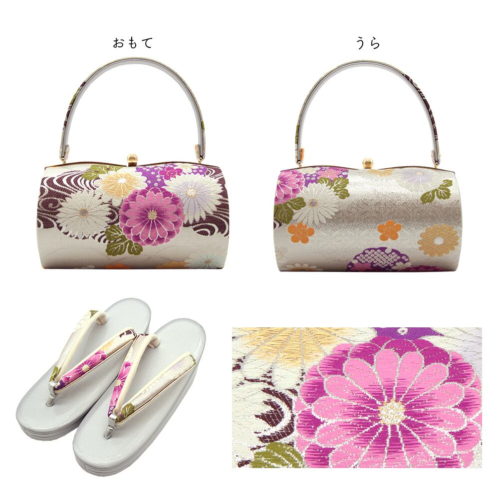 煌びやかな銀糸がふんだんに織り込まれた豪華な草履バッグ。