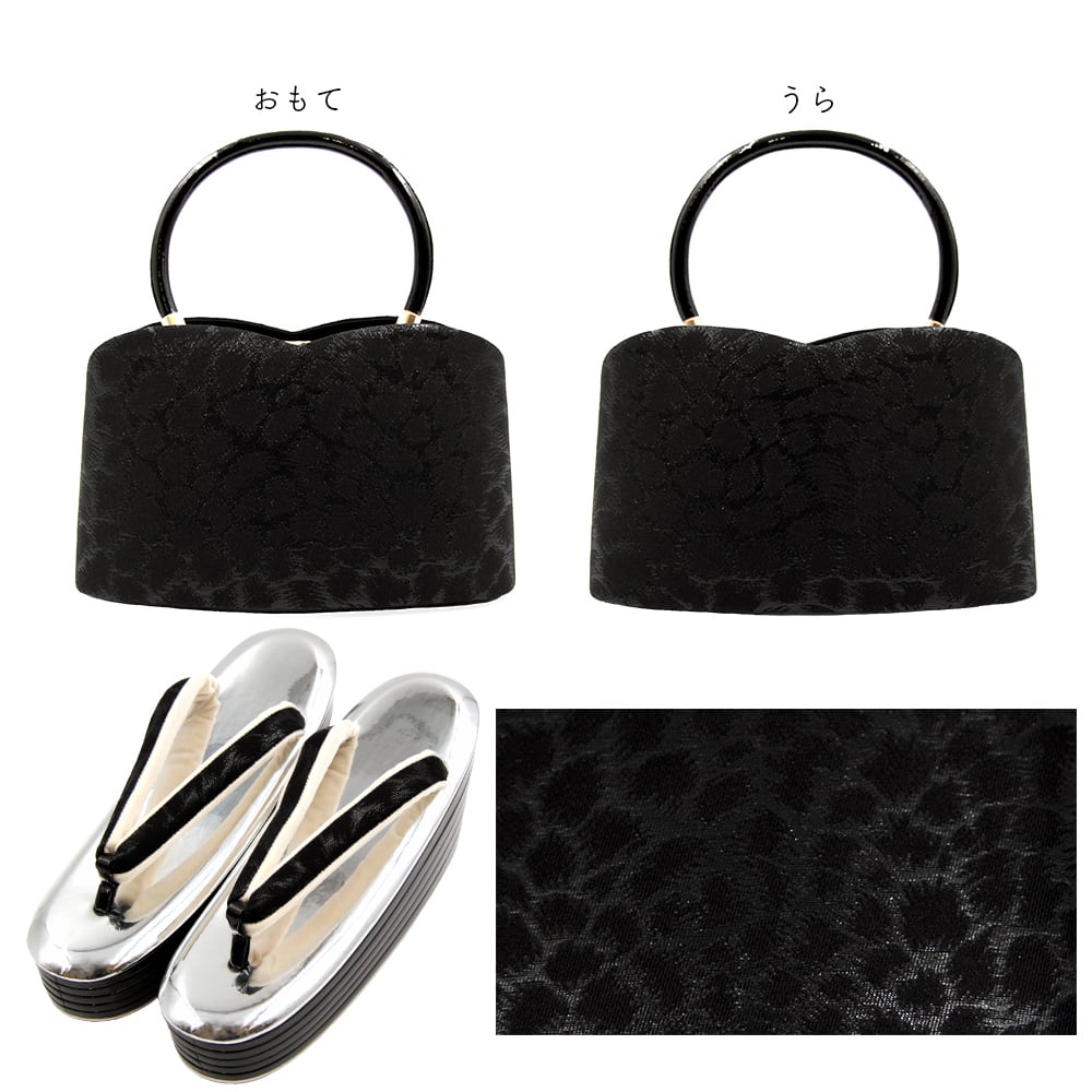 草履バッグ 草履バック 草履バッグセット 紗織 沙織 レオパード 黒 クール 正絹帯地 振袖 成人式 卒業式 フリーサイズ WA-Z-44