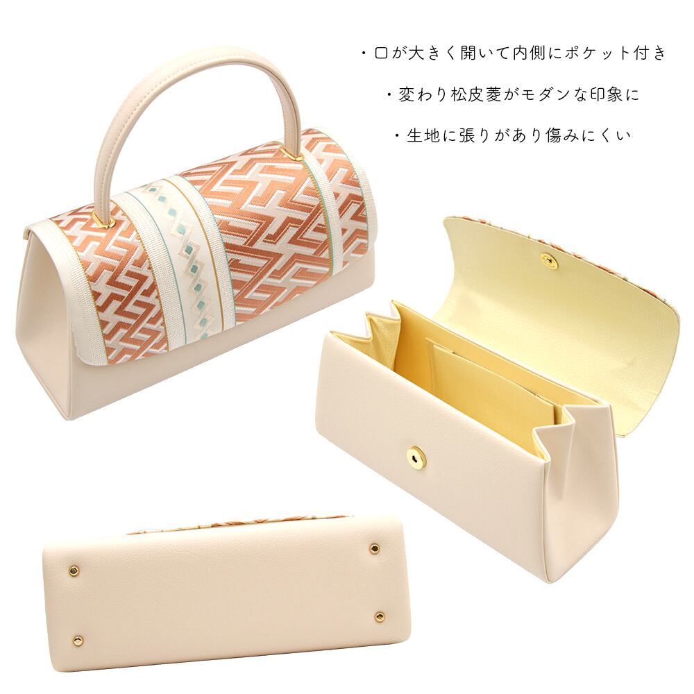 白の合皮が清楚感たっぷりで、変わり松皮菱がモダンな印象に。