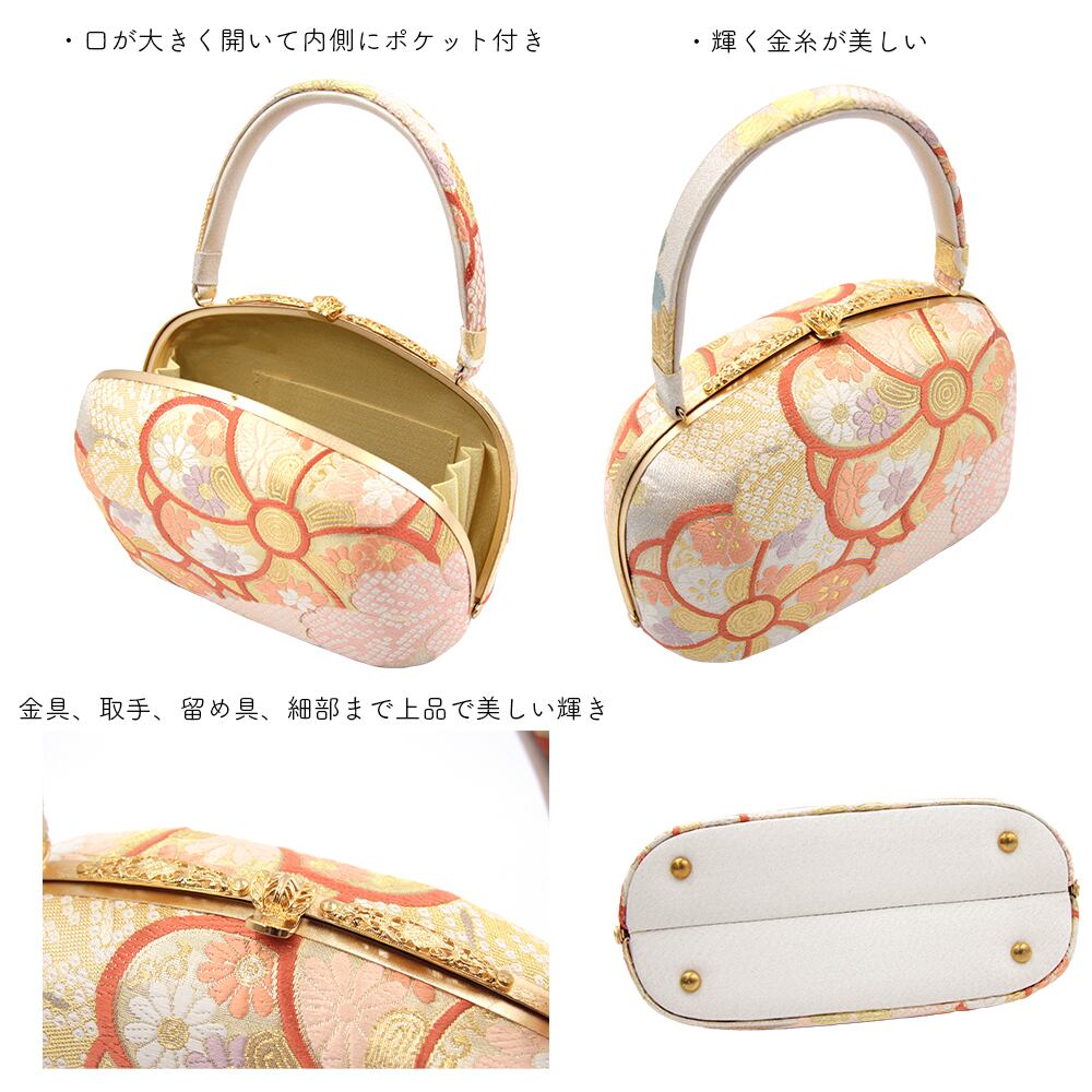 梅柄と丸いフォルムが美しく、金具や取手、留め具の細部まで繊細で品があるデザインです。