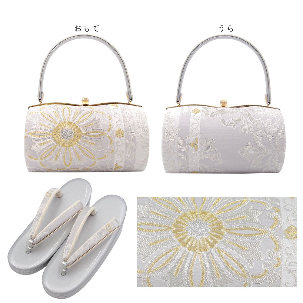 シンプルな配色でお着物の柄を引き立たせる草履バッグ。