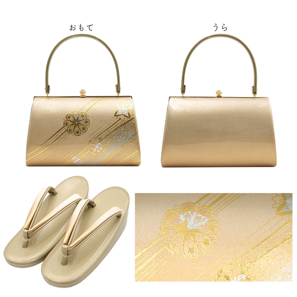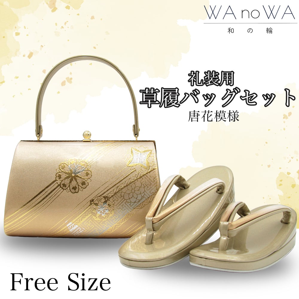 草履バッグ 草履バック 草履バッグセット 唐草模様 ゴールド ホワイトゴールド エナメル 礼装用 黒留袖 色留袖 七五三 訪問着 結婚式 フリ−サイズ WA-Z-82 | WA by Petal Prier