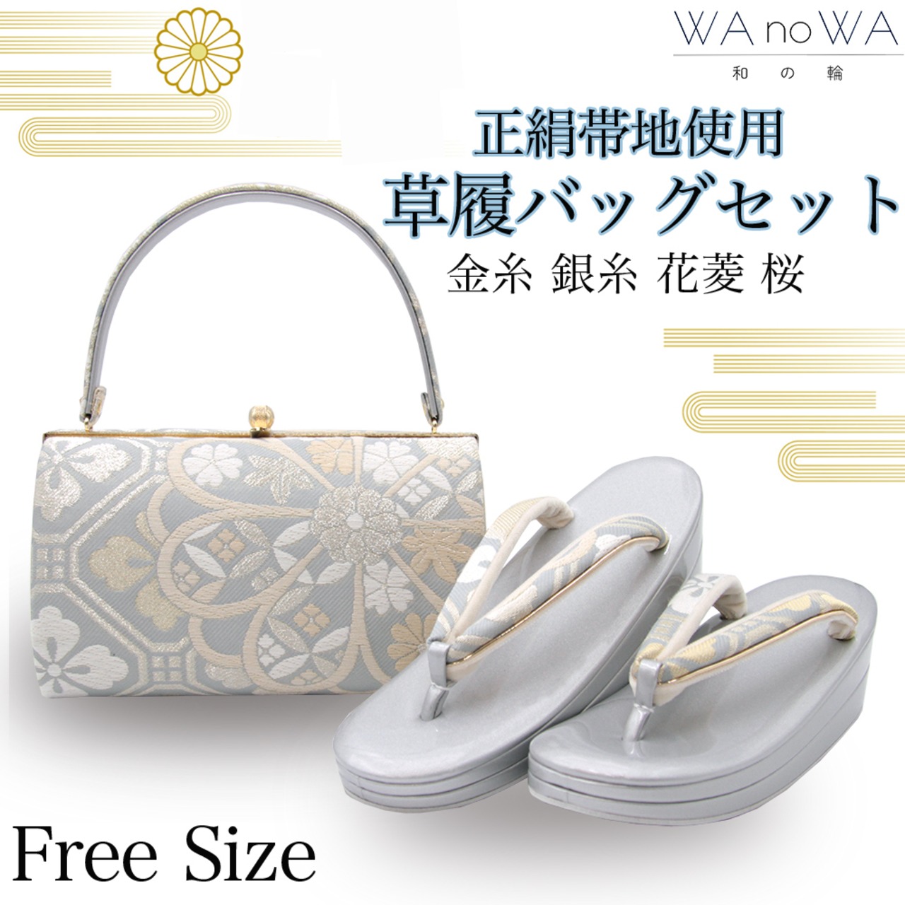花菱や桜の花が華やかな草履バッグです。