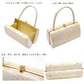 曲線が美しい雲取り模様で、金具・取っ手・留め具の細部まで上品で美しいデザインとなっております。