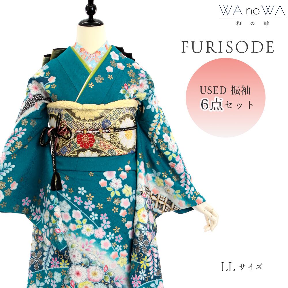 振袖 振袖セット USED振袖 青 辻が花 藤 6点セット レディース LLサイズ WA-FN-6