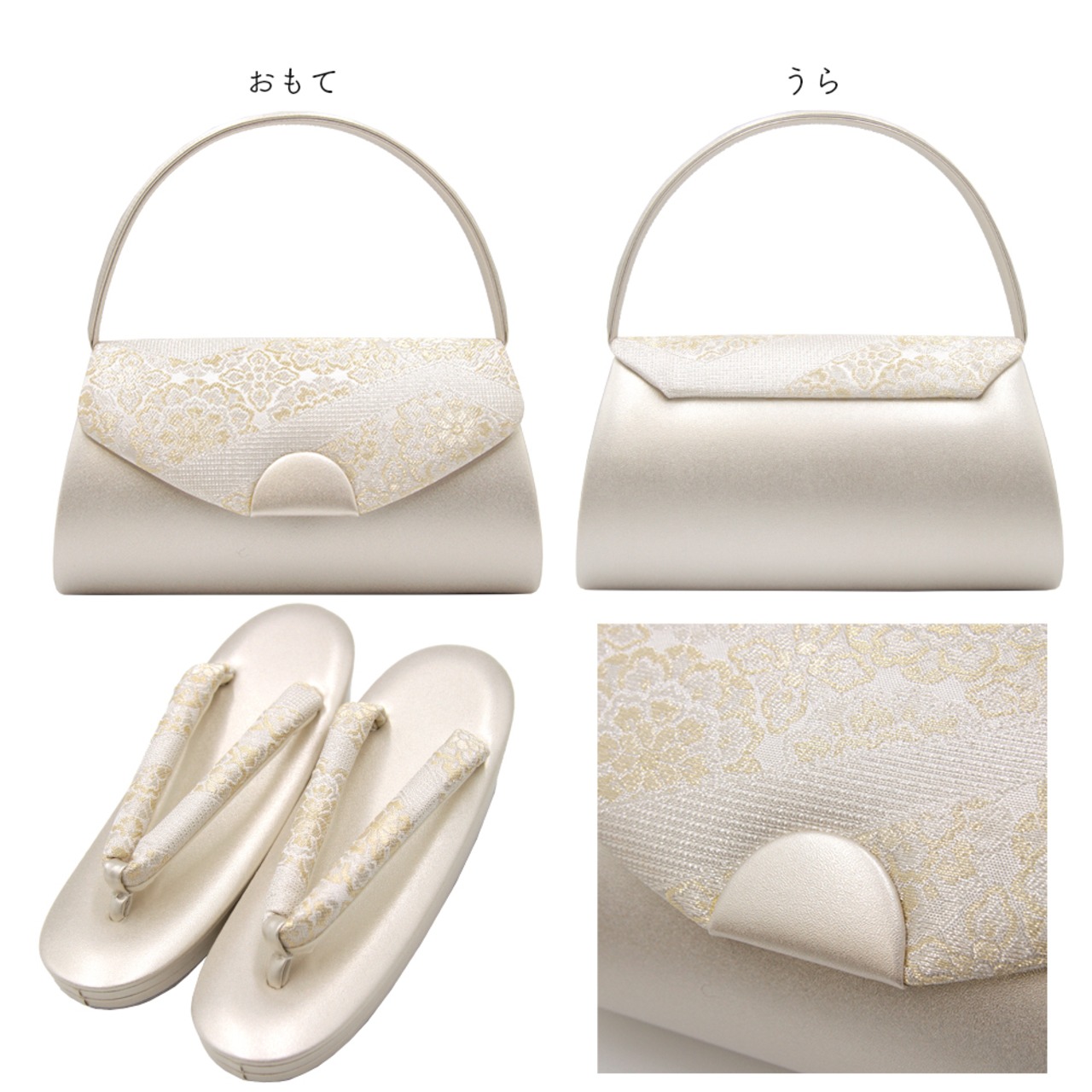 草履バッグ 草履バック 草履バッグセット かぶせ プラチナ 唐草模様 正絹帯地 フォーマル用 黒留袖 色留袖 七五三 訪問着 結婚式 フリ−サイズ WA-Z-123 | WA by Petal Prier