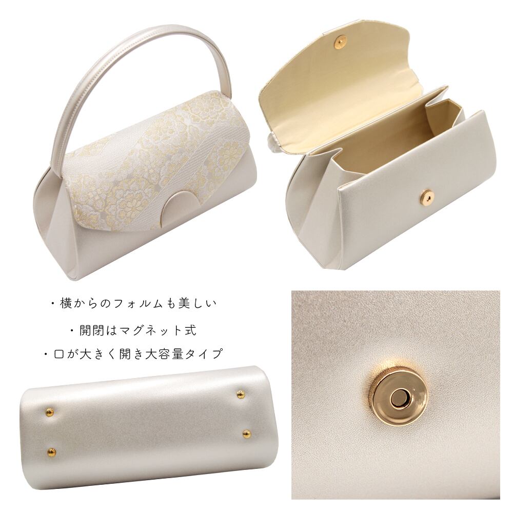 輝く銀糸・金糸が上品で美しい唐草模様の礼装用草履バッグ。