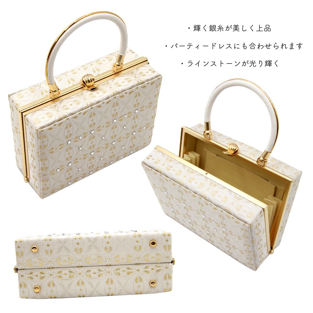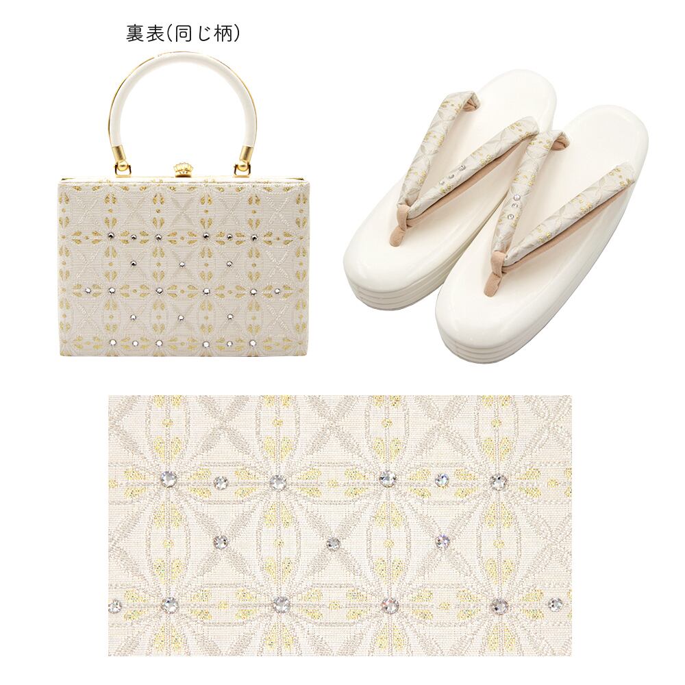 草履バッグ 草履バック 草履バッグセット 紗織 沙織 銀糸 七宝 花菱 正絹帯地 和洋兼用 スクエア ラインストーン 振袖 成人式 卒業式 フリ−サイズ WA-Z-126 | WA by Petal Prier