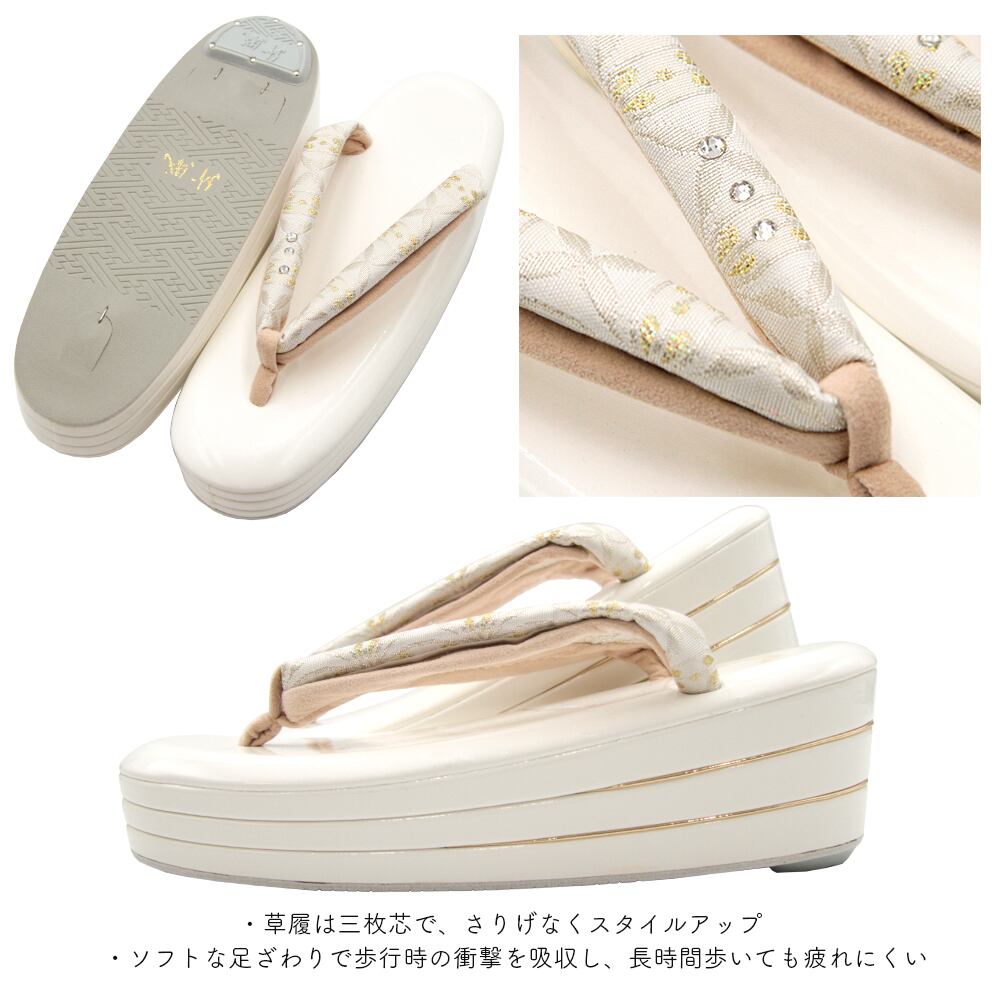 草履はソフトな足ざわりで歩行時の衝撃を吸収し、長時間歩いても疲れにくい仕様となっております。