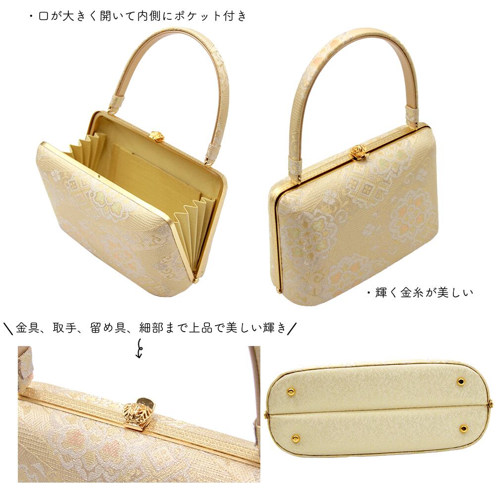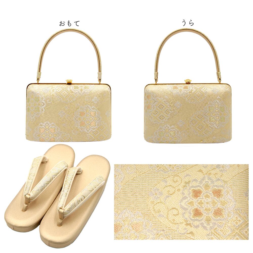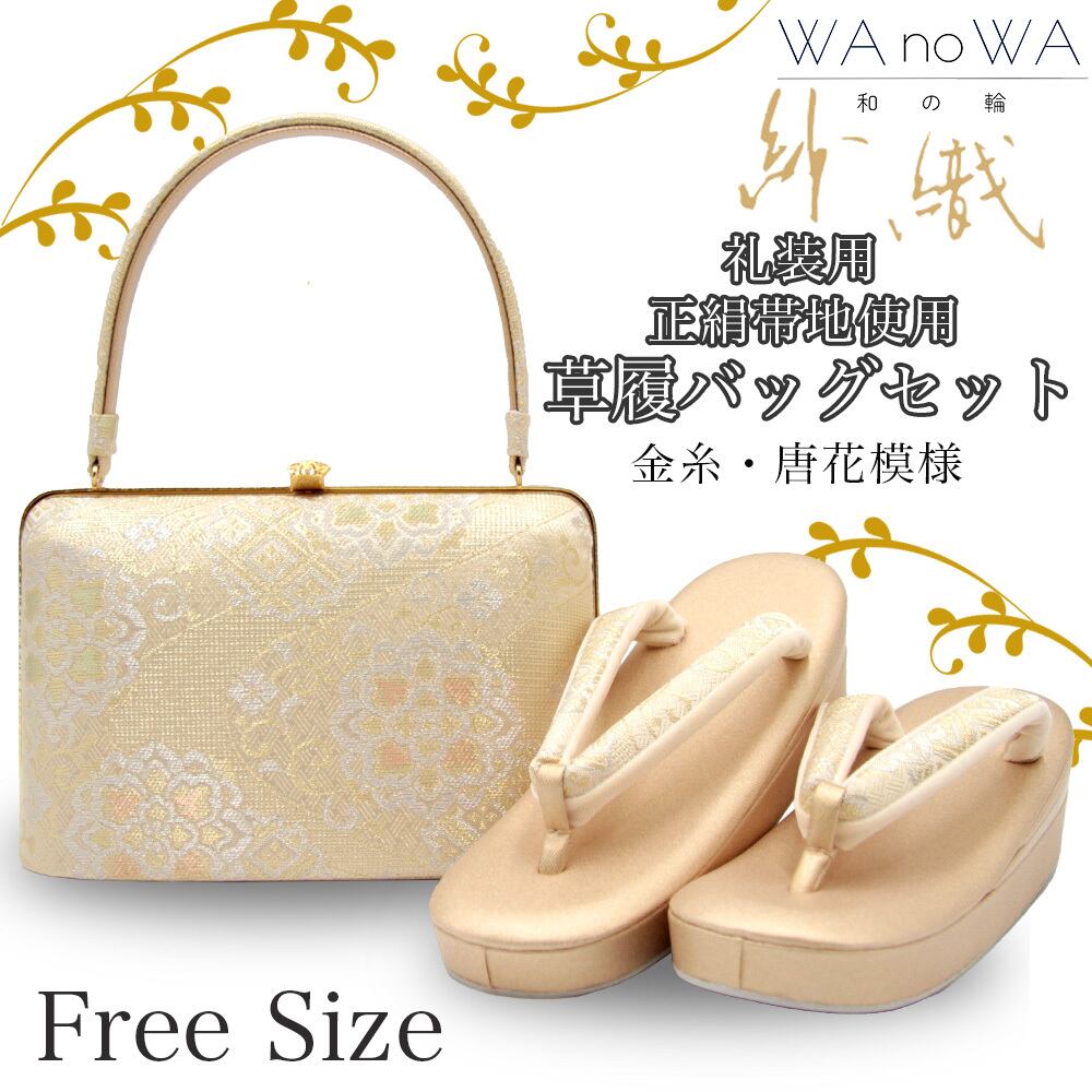 草履バッグ 草履バック 草履バッグセット 紗織 沙織 金糸 唐草模様 正絹帯地 フォーマル用 黒留袖 色留袖 七五三 訪問着 結婚式 フリ−サイズ WA-Z-128 | WA by Petal Prier