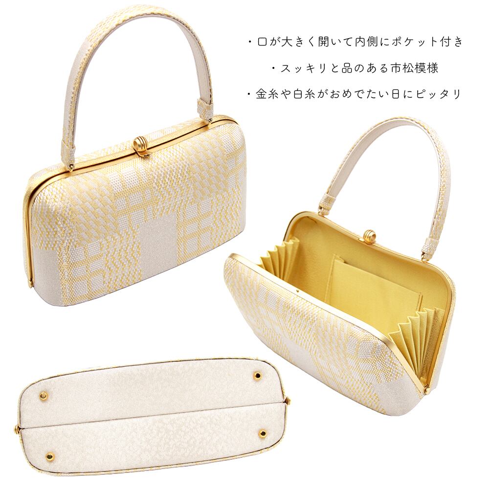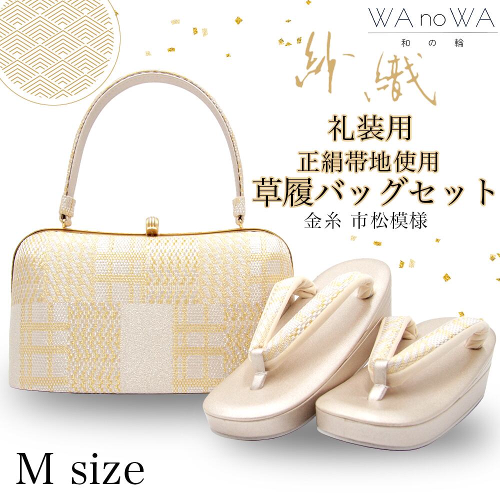草履バッグ 草履バック 草履バッグセット 紗織 沙織 金糸 市松模様 正絹帯地 フォーマル用 黒留袖 色留袖 七五三 訪問着 結婚式 Mサイズ WA-Z-139 | WA by Petal Prier