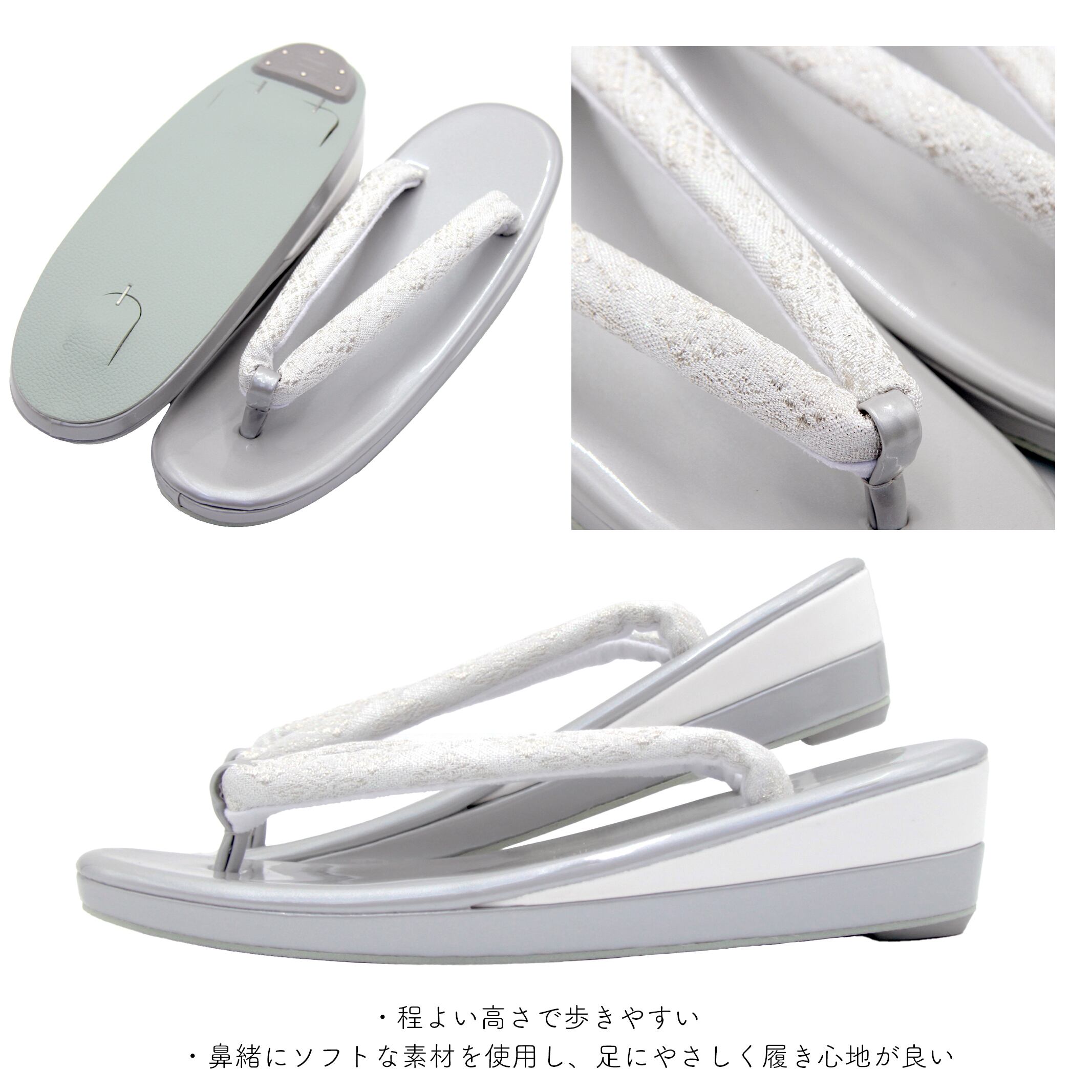 草履は鼻緒にソフトな素材を使用しているため、足にやさしく履き心地が良いです。