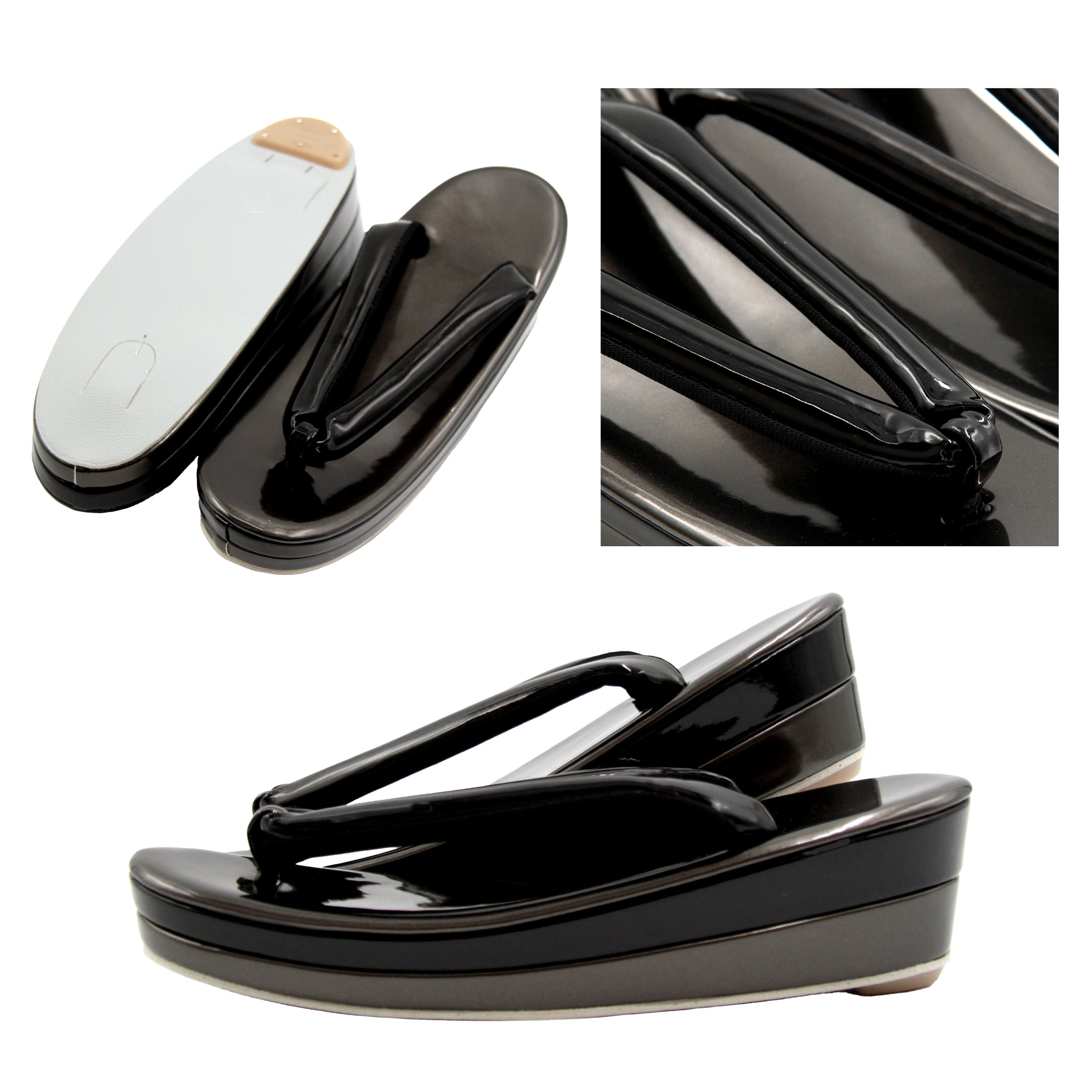 なめらかな艶が美しいエナメルのシンプルな草履バッグセットです。