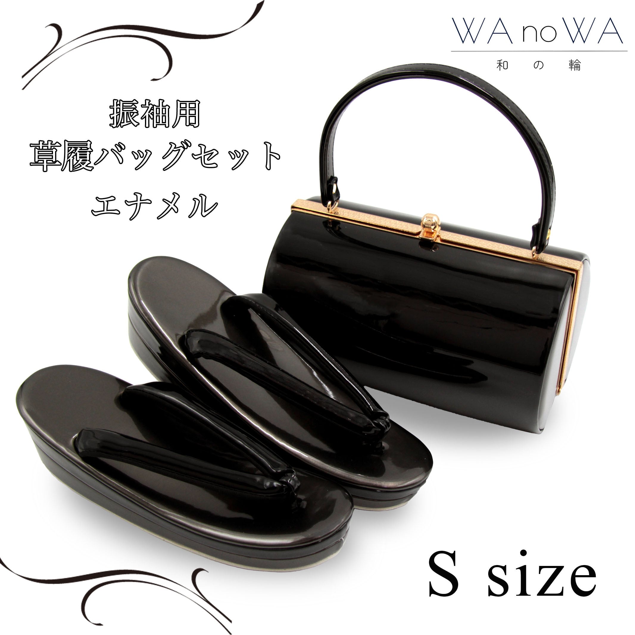 草履バッグ 草履バック 草履バッグセット グレー ブラック シンプル エナメル 振袖 成人式 卒業式 Sサイズ WA-Z-170-S