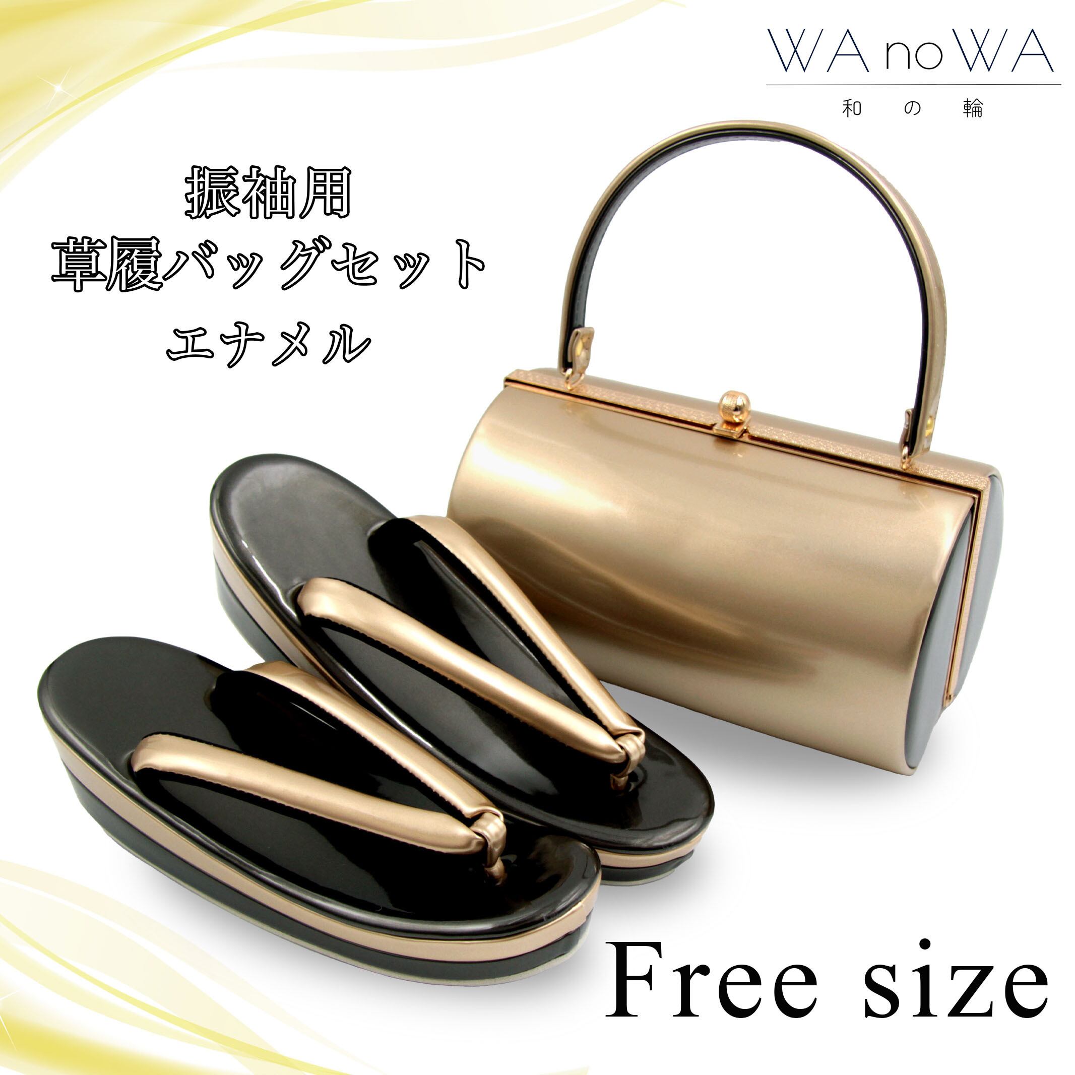 なめらかな艶が美しいエナメルのシンプルな草履バッグセットです。