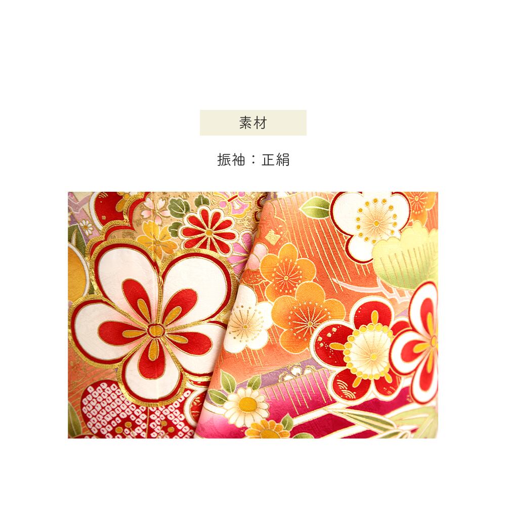 振袖 振袖セット USED振袖 オレンジ 松竹梅 金駒刺繍 6点セット レディース S〜Mサイズ WA-FN-90