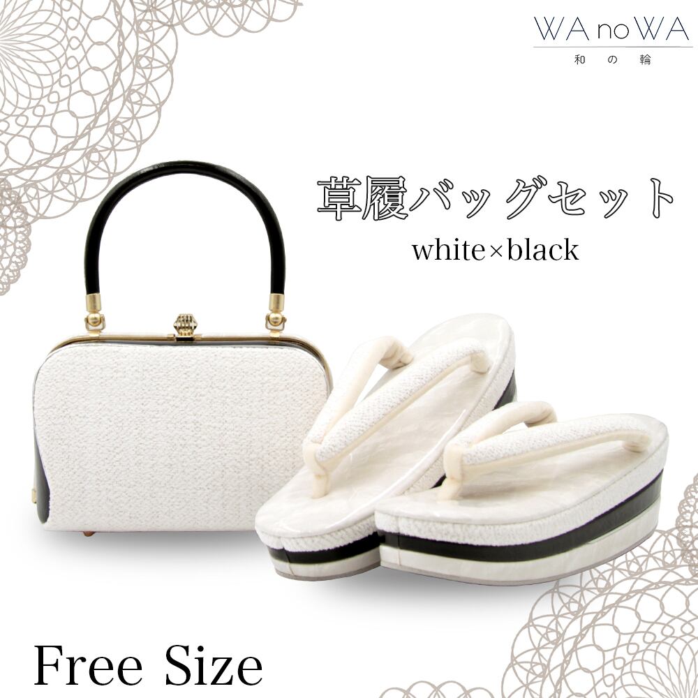 草履バッグ 草履バック 草履バッグセット ツートーン ホワイト ブラック 裏起毛 振袖 成人式 卒業式 フリ−サイズ WA-Z-185